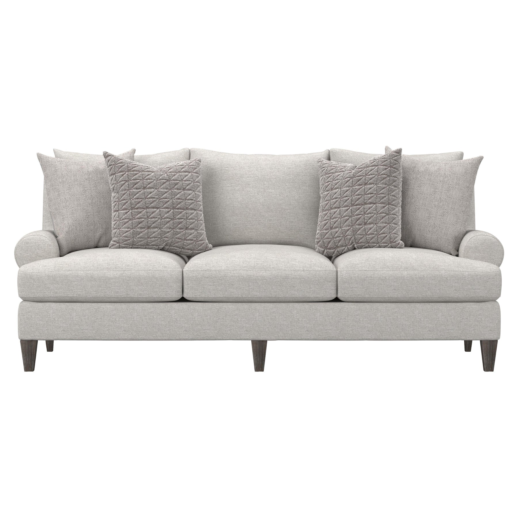 Built on a solid hardwood frame to Bernhardt's rigorous manufacturing standards, the Isabella Fabric Sofa features precision-cut upholstery panels, carefully calibrated cushion fill, and a structural architecture designed for decades of reliable use. The traditional silhouette bridges classic comfort expectations and the clean proportional language of contemporary American furniture design.
