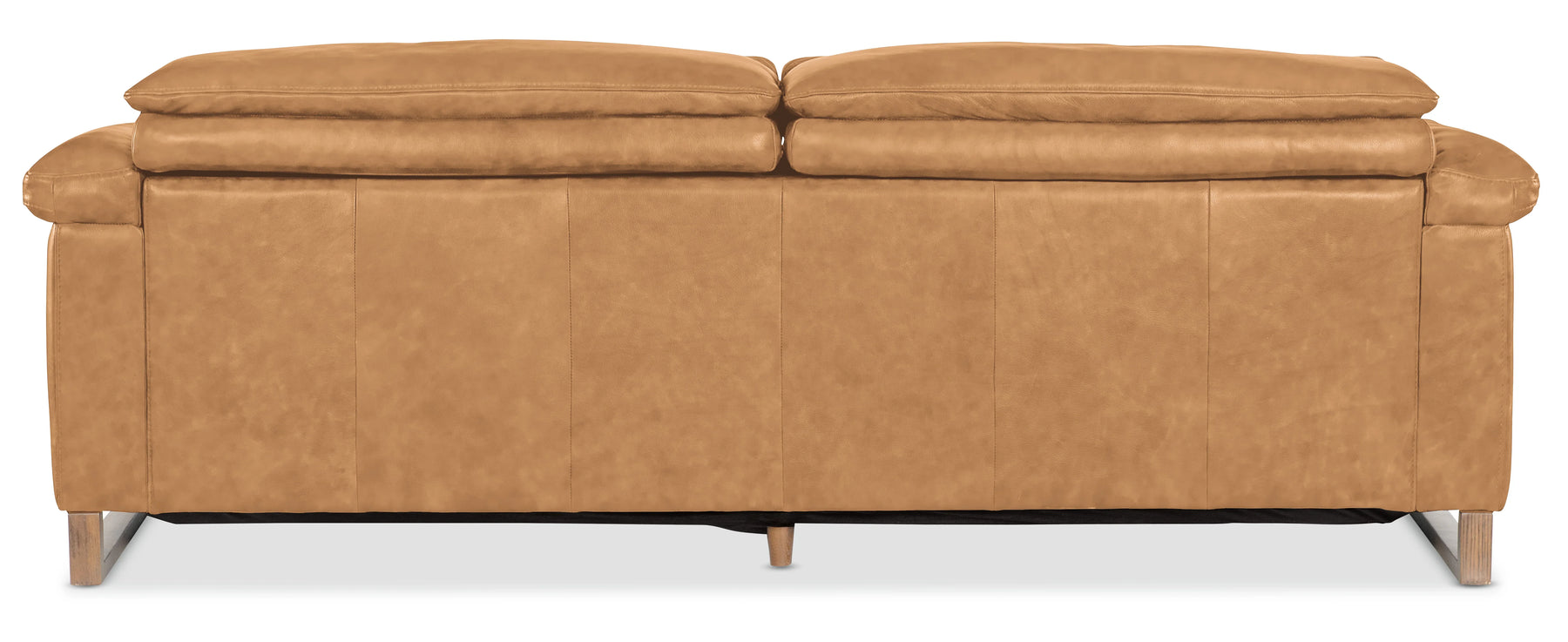 Oversized comfort meets tailored function in the Jericho Power Sofa. Upholstered in Dallas Toffee leather, it features plush pillow arms, wood-framed sides with a sleigh silhouette, and discreetly placed power controls. With a power headrest and USB port, this sofa redefines laid-back luxury.