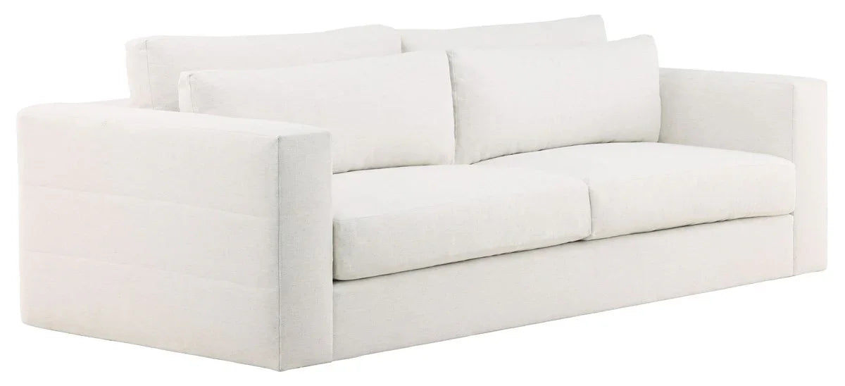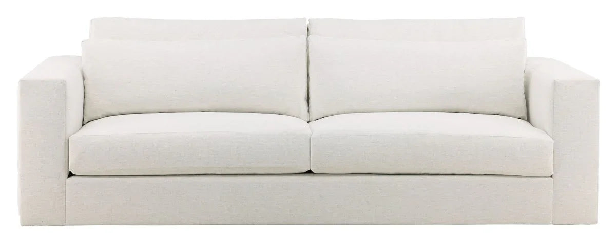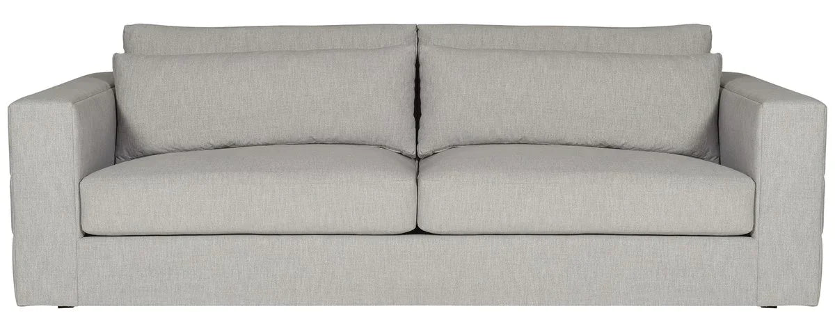 Built upon a solid hardwood frame engineered for long-term structural integrity, the Leone Sofa reflects Vanguard's foundational commitment to craftsmanship built to last for decades. The piece is currently available in Nomad Snow, Topper Oatmeal, Identify Dove, with the full Vanguard fabric program offering far broader customization for special orders. Cushion cores pair high-resilience foam with a down-wrap finish — holding their shape through years of use while delivering the plush, supportive feel that distinguishes Vanguard seating. Leg finishes are available in multiple wood tones and metal options, allowing precise coordination with the surrounding furniture and room palette. Dimensions: 35H x 100W x 47.5D.
