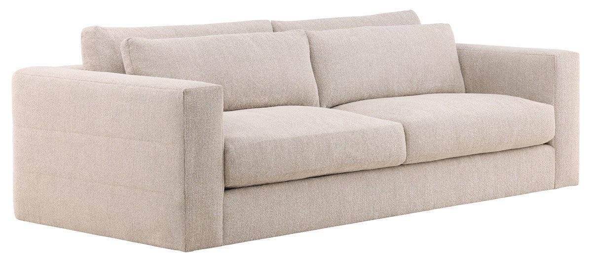 The Leone Sofa embodies the relaxed refinement that has long defined Vanguard's upholstery program, presenting a beautifully proportioned silhouette with warm beige and soft grey upholstery and gently tailored cushioning that invites conversation and extended evenings at home.