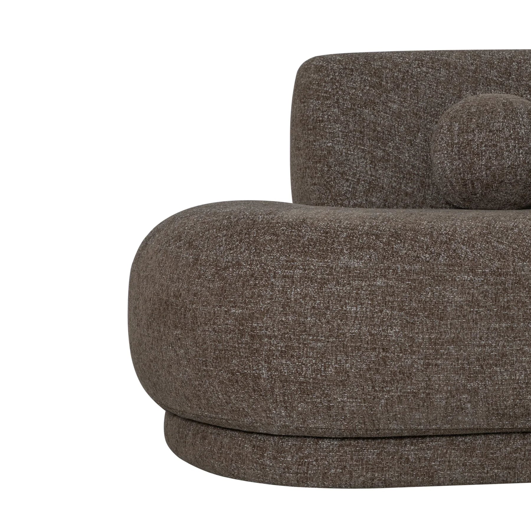 The sofa features a distinctive oval seat shape that offers generous seating for up to three people. Its gracefully curved back enhances both visual interest and ergonomic support, creating a comfortable space to relax or entertain. The armless design contributes to a sleek, open silhouette that works beautifully in both compact and spacious interiors.