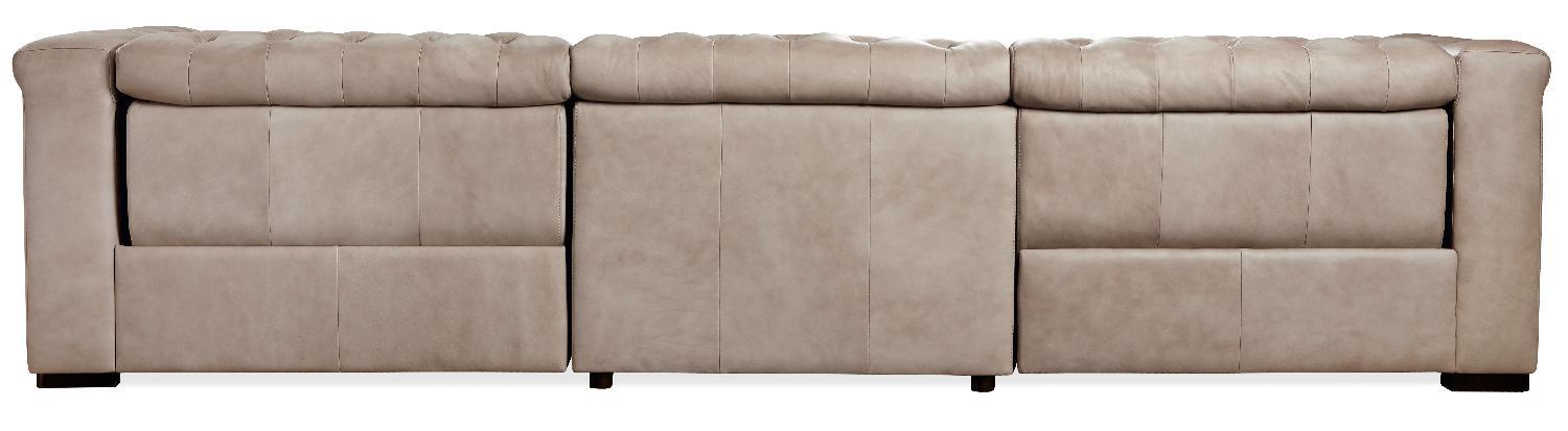 Inspire awe with your family and friends, who will never believe a sofa as stunning as the Savion Grandier has two power reclining ends, and that each of the 3 seats features an adjustable headrest. The individually operated headrests invite you to lean back and relax your upper body while watching TV, reading or conversing, and the end seating units transform to recliners with a smooth power control button, offering exceptional comfort. Savion blends classic elegance with modern flair, combining traditional button-tufted tailoring with a sleek profile back. The beautiful Giovanni Taupe leather cover is finished for stain protection and is hand wiped, giving each piece authenticity and sophisticated appeal.