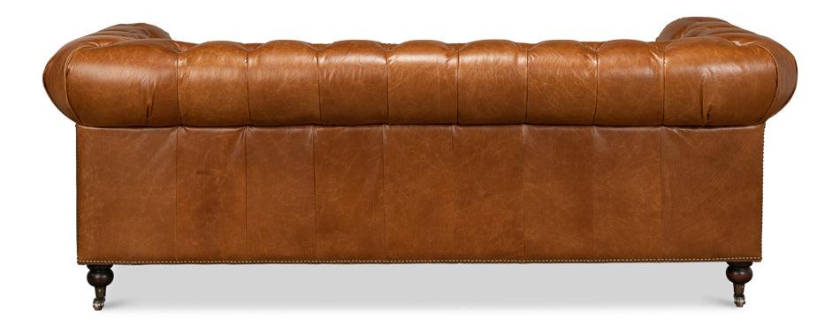 Quality leather upholstery gives the Tufted English Club Sofa - Cuba Brown a tactile richness that improves with time, developing a distinctive patina that marks it as a piece genuinely lived with, not merely displayed.