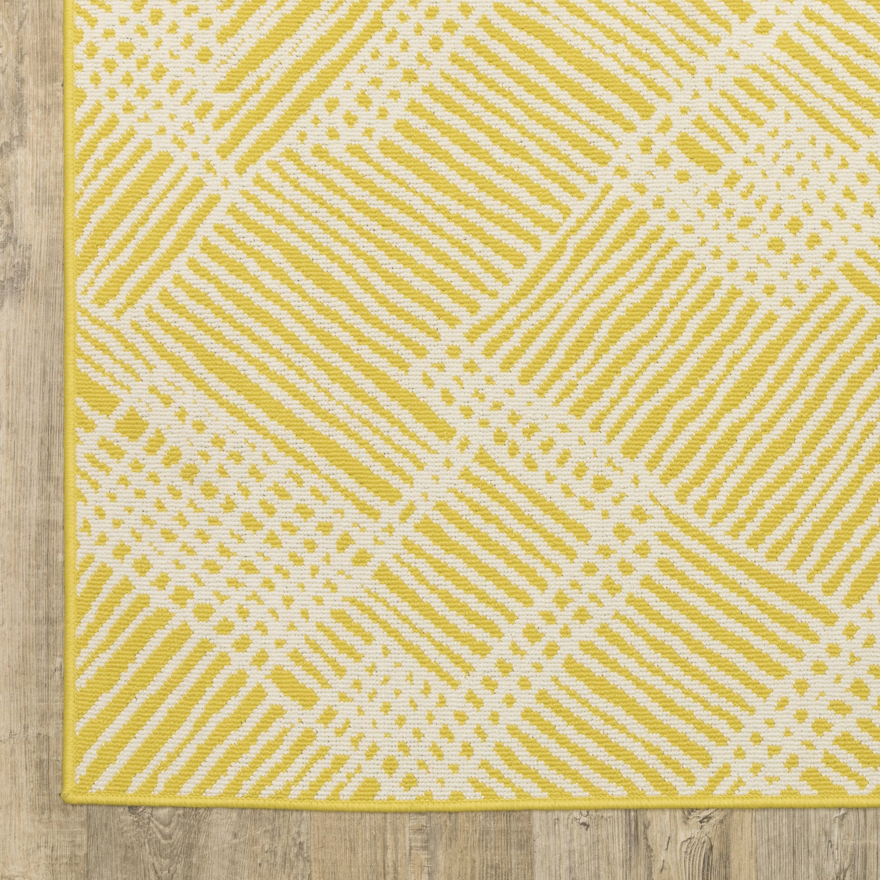 a little preppy and a lot of fun! Featuring iconic motifs in vibrant shades of sunflower yellow and flamingo pink alongside a classic navy and green duo, this collection is sure to bring feelings of sweet summer year-round. Power-loomed of 100% polypropylene, these easy-care rugs are perfect for use inside or outside the home.