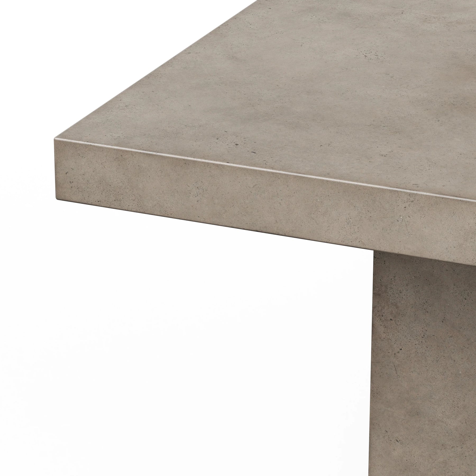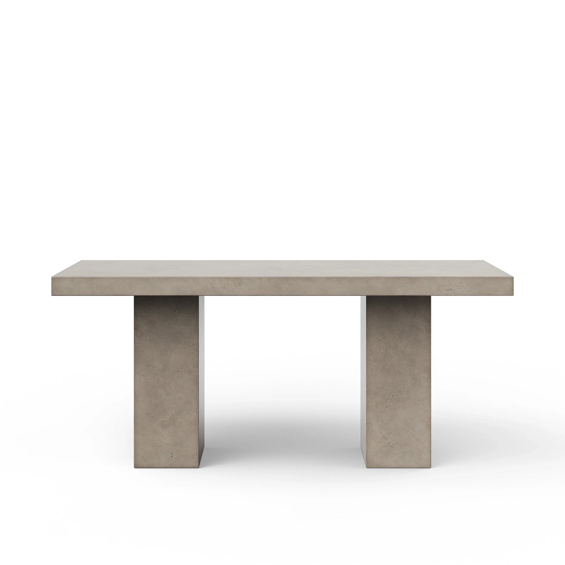 Handcrafted in Vietnam by skilled artisans using natural materials, the Elcor Bar Height Table showcases a rectangular tabletop supported by two robust pedestal legs. With its unique patina reflecting natural concrete markings and varied earth-toned finishes, each piece boasts individual character. Constructed from durable fiber-reinforced concrete, this outdoor-friendly bar table blends a refined, modern aesthetic with industrial edge. Embracing its handcrafted charm, small hairline cracks and natural imperfections enhance its distinctive allure, making it a perfect fit for contemporary patios, upscale dining areas, or stylish indoor bars.