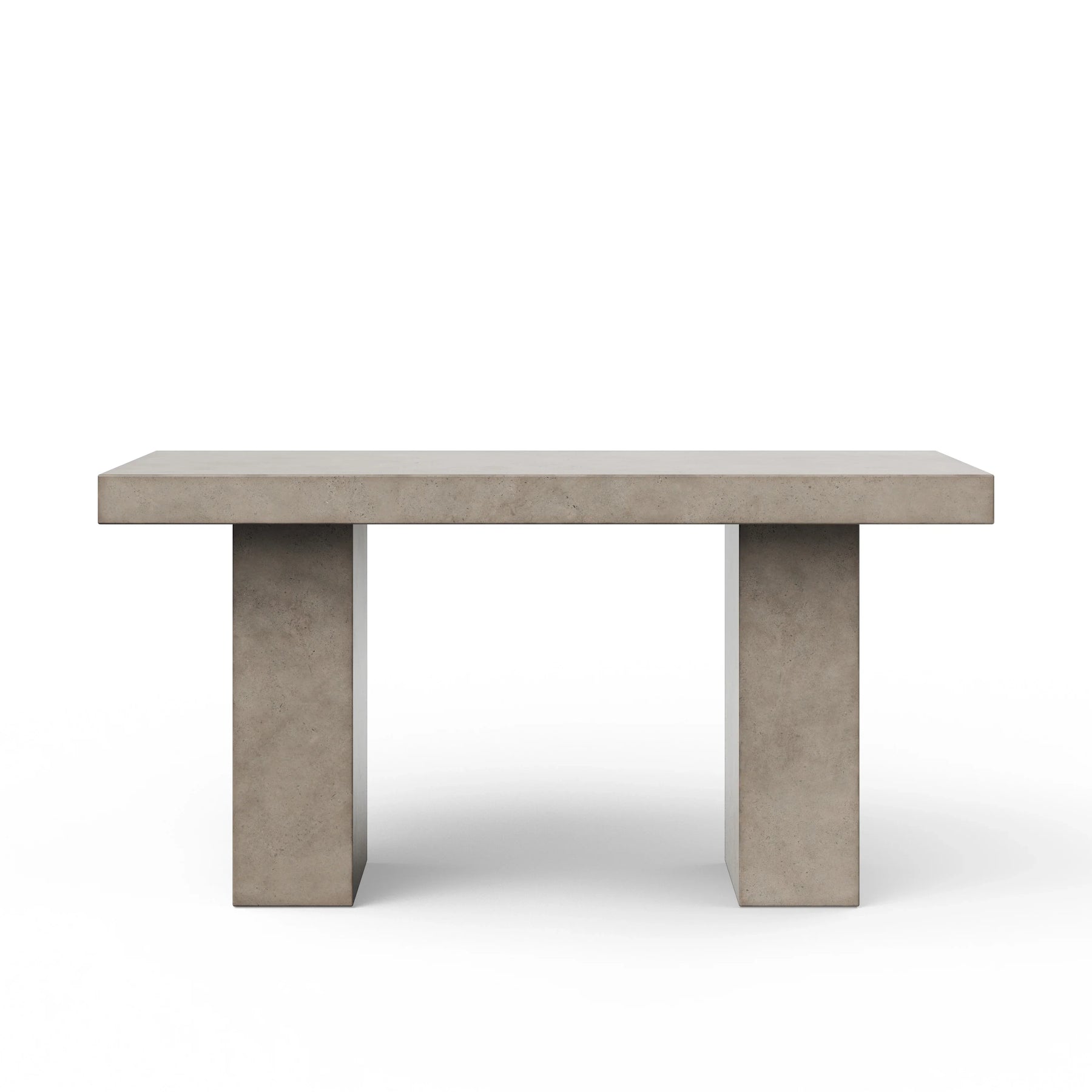 Handcrafted in Vietnam by skilled artisans using natural materials, the Elcor Counter Height Table showcases a rectangular top supported by two robust pedestal legs. With its unique patina reflecting natural markings and varied tones, each piece boasts character. Constructed from durable fiber-reinforced concrete, this modern counter height table seamlessly blends a refined aesthetic with an industrial edge. Designed for both indoor and outdoor use, the Elcor Table is perfect for kitchen counters, patio dining areas, or contemporary commercial settings. Embracing its inherent charm, small hairline cracks and imperfections contribute to its distinctive allure.