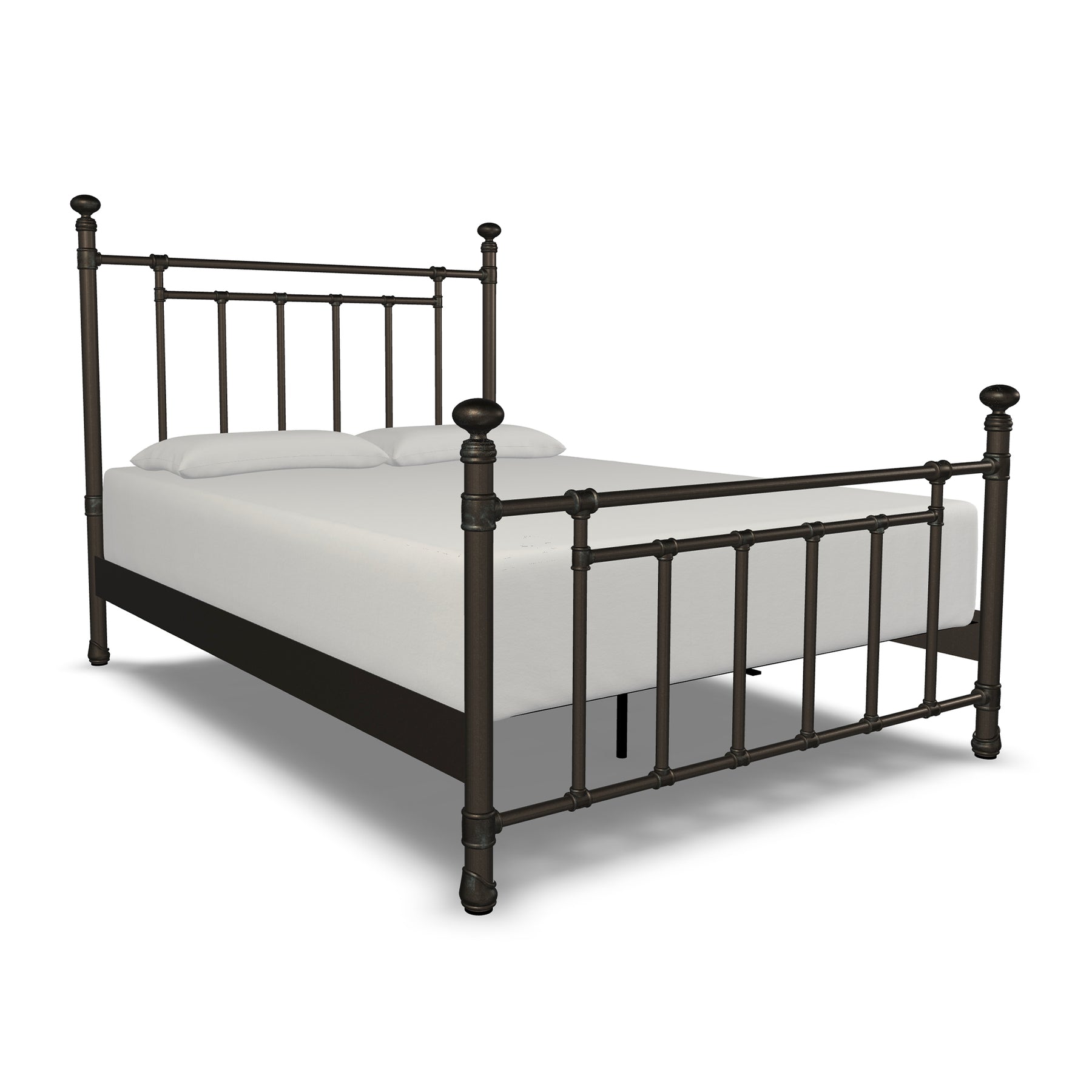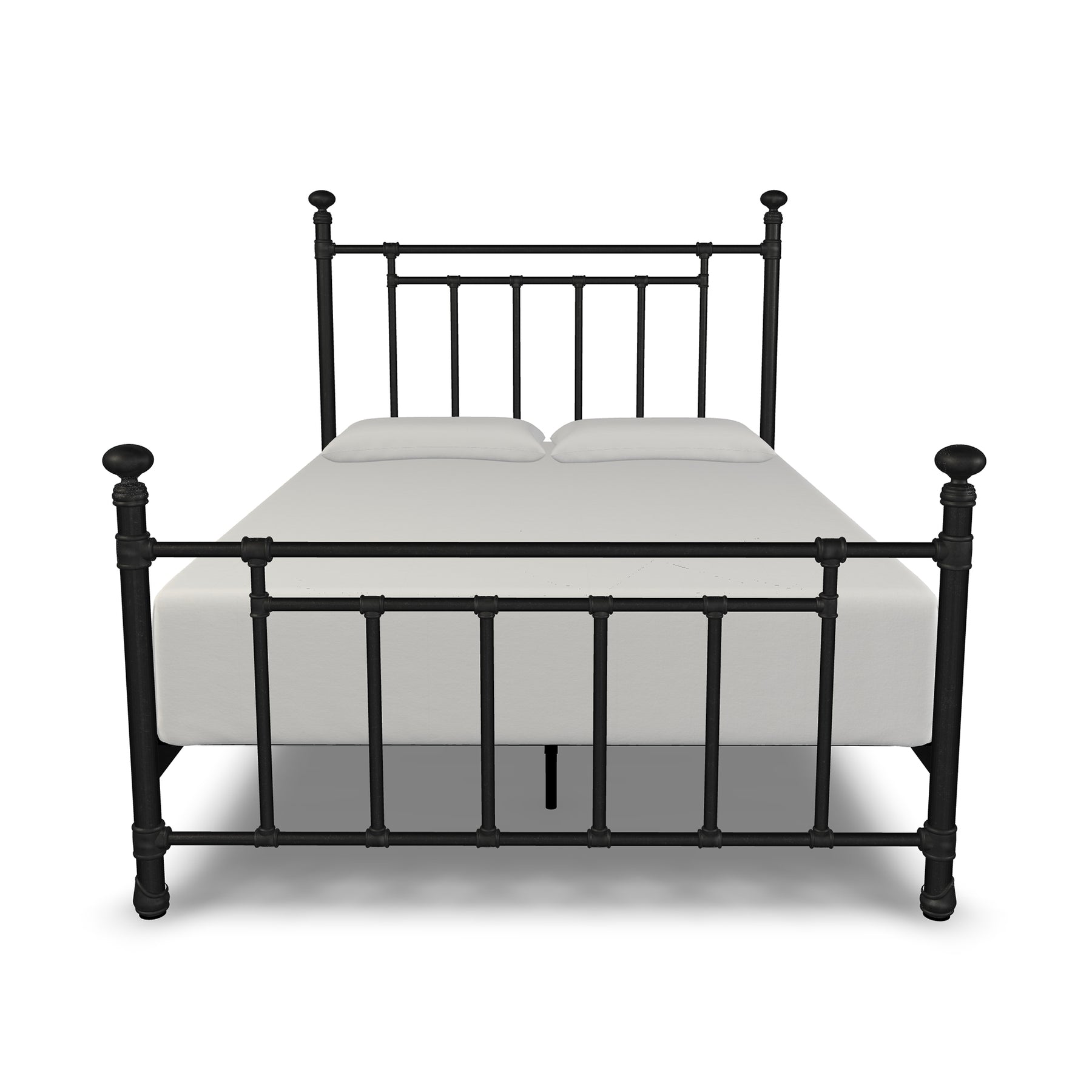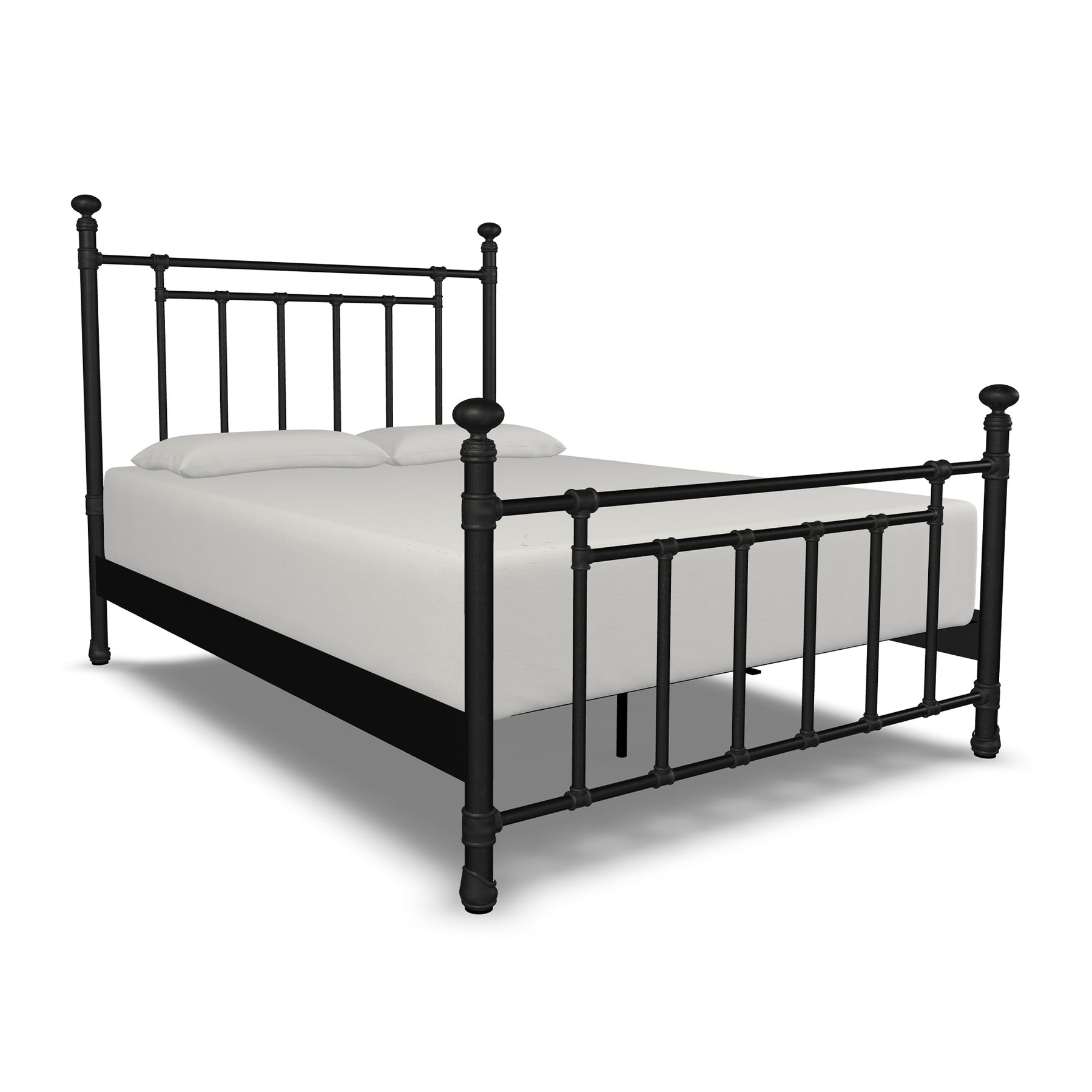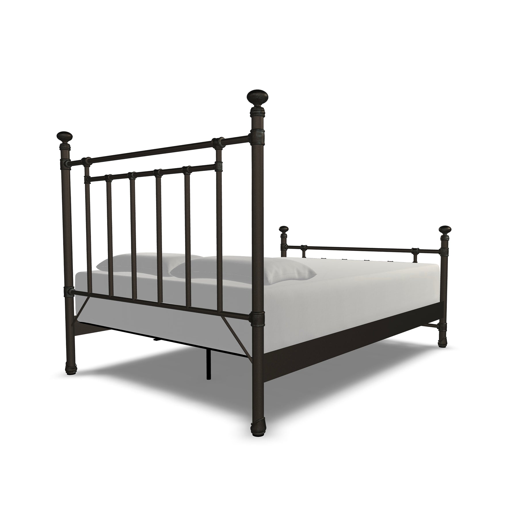 Inventive, fun-loving and simplistic, the Edin iron bed personifies classic ingenuity. Built with unsurpassed craftsmanship by true artisans it showcases sturdy style top rails with slim, strong angular bars in the headboard & footboard. Handcrafted with premium wrought iron by skilled artisans, it is a sturdy, high-end bed with its one-piece fully welded headboard, footboard and custom heavy duty steel frame. Decorative hand-poured castings at each joint add to its luxurious style and the sleek profile side panels provide a finished look. The finish is a blend of hand-applied powder paint baked on at extremely high temperatures resulting in a durable, rich finish for exceptional lasting color. It fits standard mattress boxspring not required; the headboard height is 51 inches and the footboard height is 36 inches. This exceptional Edin Iron Bed won't disappoint with its unsurpassed strength, beauty and vintage style you will enjoy for years.