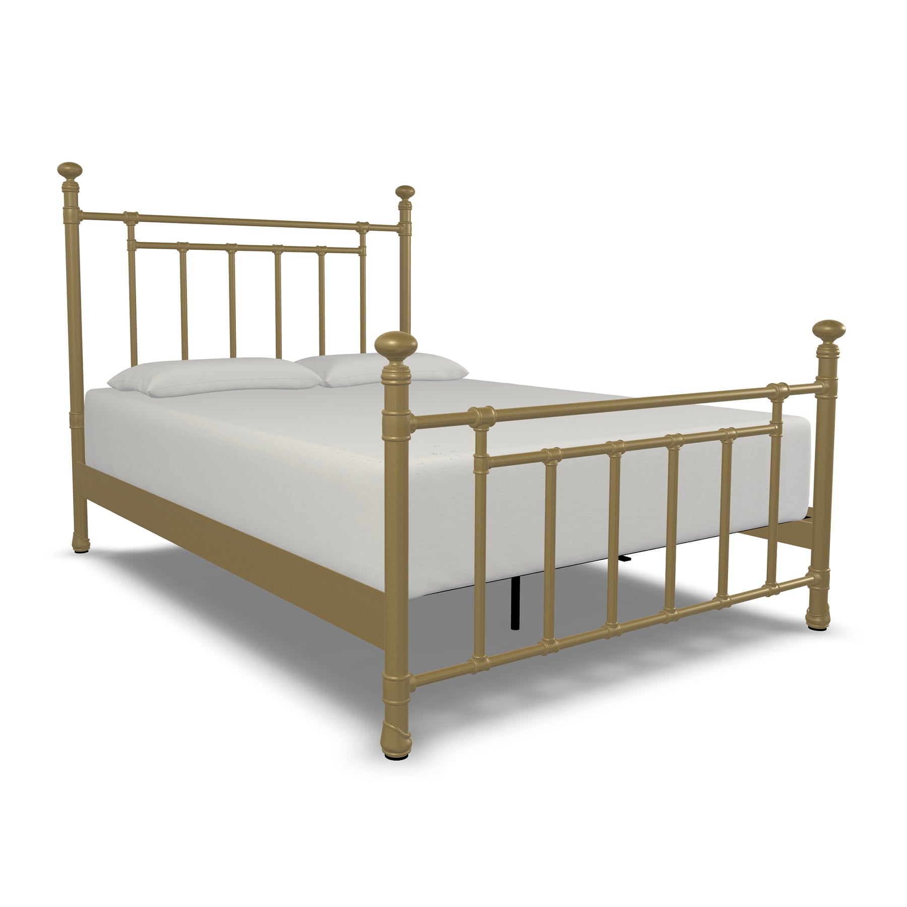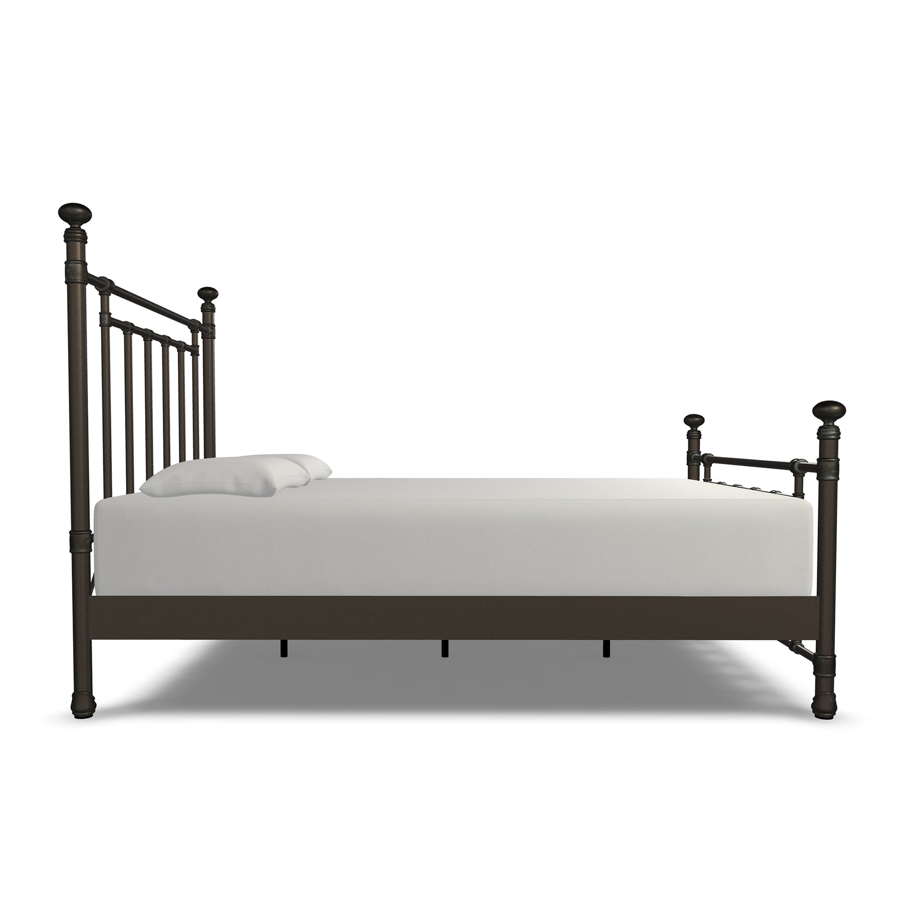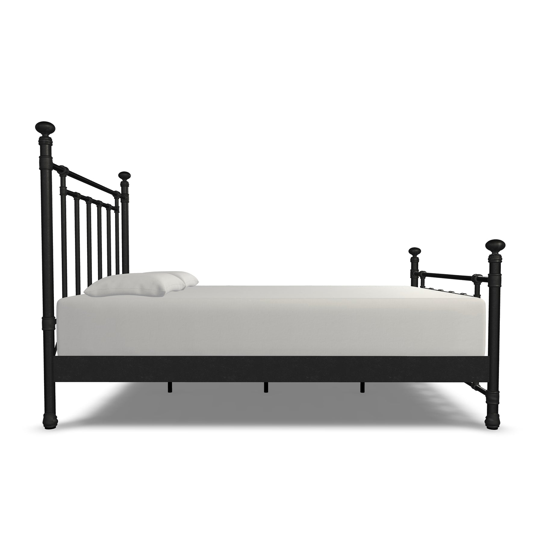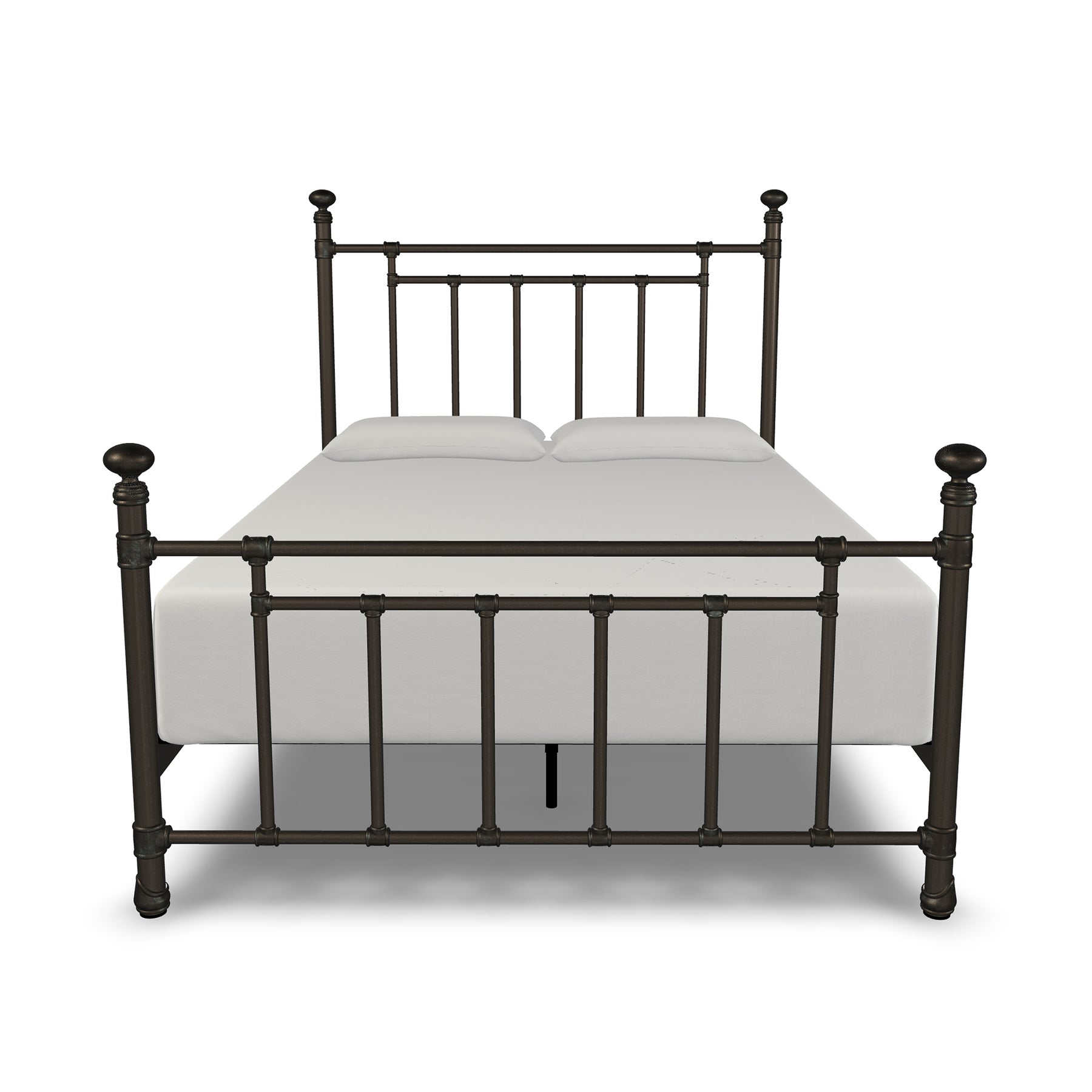 Inventive, fun-loving and simplistic, the Edin iron bed personifies classic ingenuity. Built with unsurpassed craftsmanship by true artisans it showcases sturdy style top rails with slim, strong angular bars in the headboard & footboard. Handcrafted with premium wrought iron by skilled artisans, it is a sturdy, high-end bed with its one-piece fully welded headboard, footboard and custom heavy duty steel frame. Decorative hand-poured castings at each joint add to its luxurious style and the sleek profile side panels provide a finished look. The finish is a blend of hand-applied powder paint baked on at extremely high temperatures resulting in a durable, rich finish for exceptional lasting color. It fits standard mattress boxspring not required; the headboard height is 51 inches and the footboard height is 36 inches. This exceptional Edin Iron Bed won't disappoint with its unsurpassed strength, beauty and vintage style you will enjoy for years.