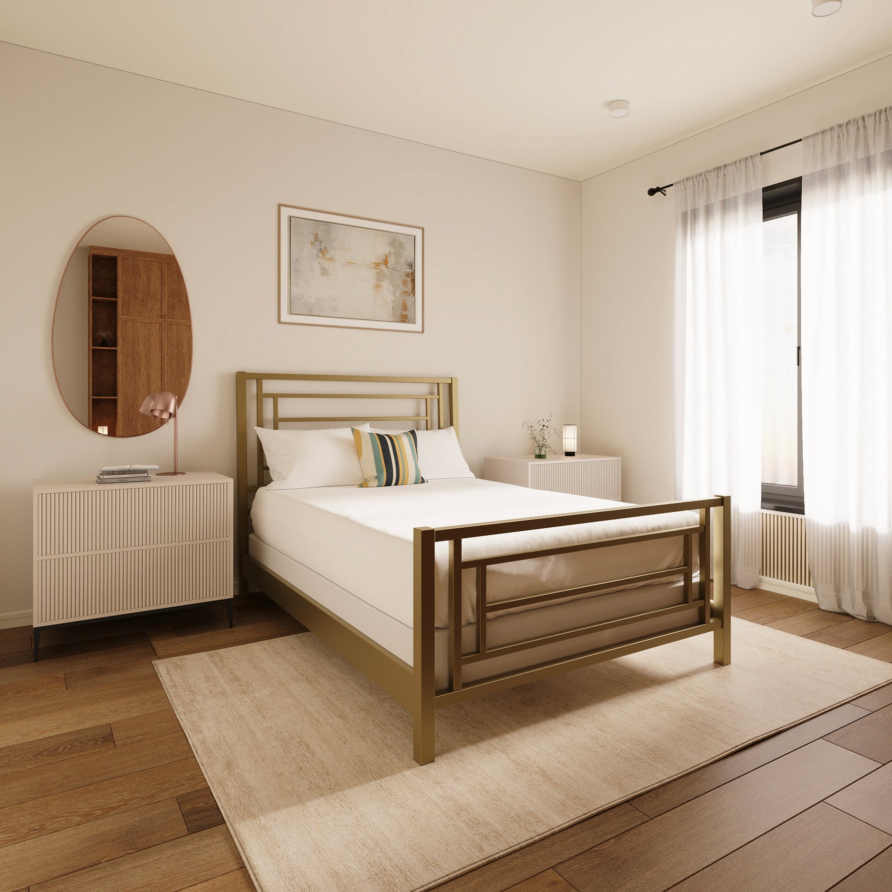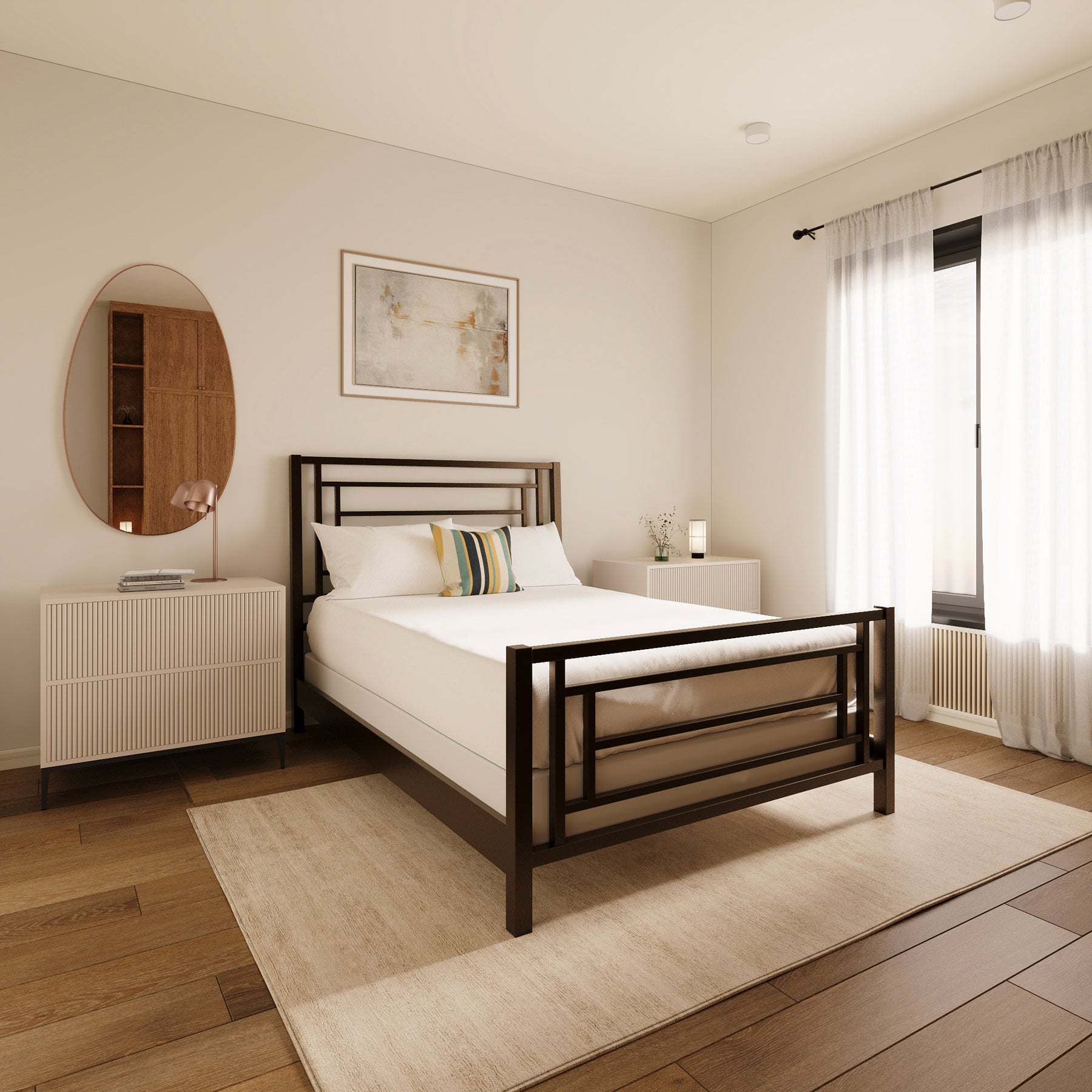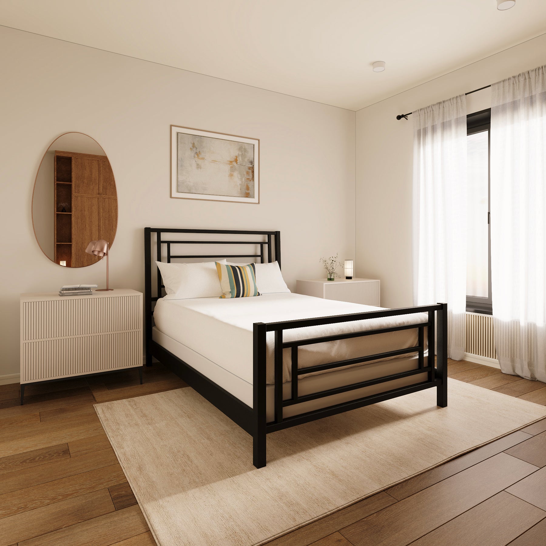 The Gloaming iron bed blends classic bedroom idealism with classy design, fermenting unparalleled style and taste. A highly unique custom designer furniture selection, Gloaming identifies with morning energy and nighttime allure with its rich, tasteful, and well-grounded hues. Adaptive yet bold, flexible, but iconic, the bed effectively captures the intrinsic beauty of the past. The finish is a blend of hand-applied powder paint baked on at extremely high temperatures resulting in a durable, rich finish for exceptional lasting color. It fits a standard mattress & box spring; the headboard height is 56 inches and the footboard height is 28 inches. This exceptional Gloaming Iron Bed won't disappoint with its unsurpassed strength, beauty and vintage style you will enjoy for years.