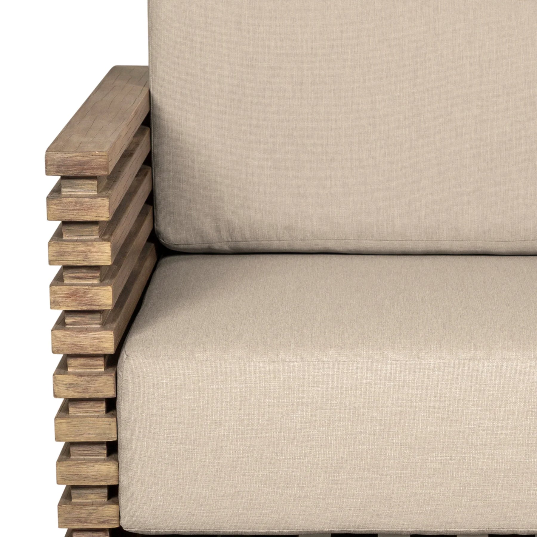 Transform your outdoor space into a haven of relaxation with the Vivid Outdoor Patio Chair. Crafted with meticulous attention to detail, this outdoor chair is a perfect fusion of style, comfort, and durability. The timeless Light Eucalyptus wood frame not only adds an element of sophistication to your outdoor setting but also ensures longevity, making it a standout piece of outdoor furniture. Designed for those who appreciate both aesthetics and resilience, the Vivid Outdoor Patio Chair boasts water-resistant and UV-resistant features, allowing it to withstand the elements with grace. Whether basking in the sun or enduring a sudden downpour, this chair remains a steadfast companion for your outdoor moments. Sink into the plush comfort of the Olefin cushion, providing a cozy seat that invites you to linger a little longer. The taupe cushion complements the Eucalyptus wood frame seamlessly, creating an inviting space for relaxation. Additionally, the removable cushion cover makes cleaning a breeze, ensuring your outdoor chair maintains its fresh and inviting allure. Versatile in design, the Vivid Outdoor Patio Chair effortlessly enhances any outdoor environment – be it a cozy corner of your garden, a serene patio, or a poolside retreat. Its ergonomic design ensures not only visual appeal but also optimal comfort, making it the perfect spot to unwind after a long day. Invest in outdoor furniture that combines style and functionality, and choose the Vivid Outdoor Patio Chair in Taupe Wood with Olefin Cushion. Elevate your outdoor seating experience with a chair that not only complements your surroundings but also withstands the rigors of outdoor living.