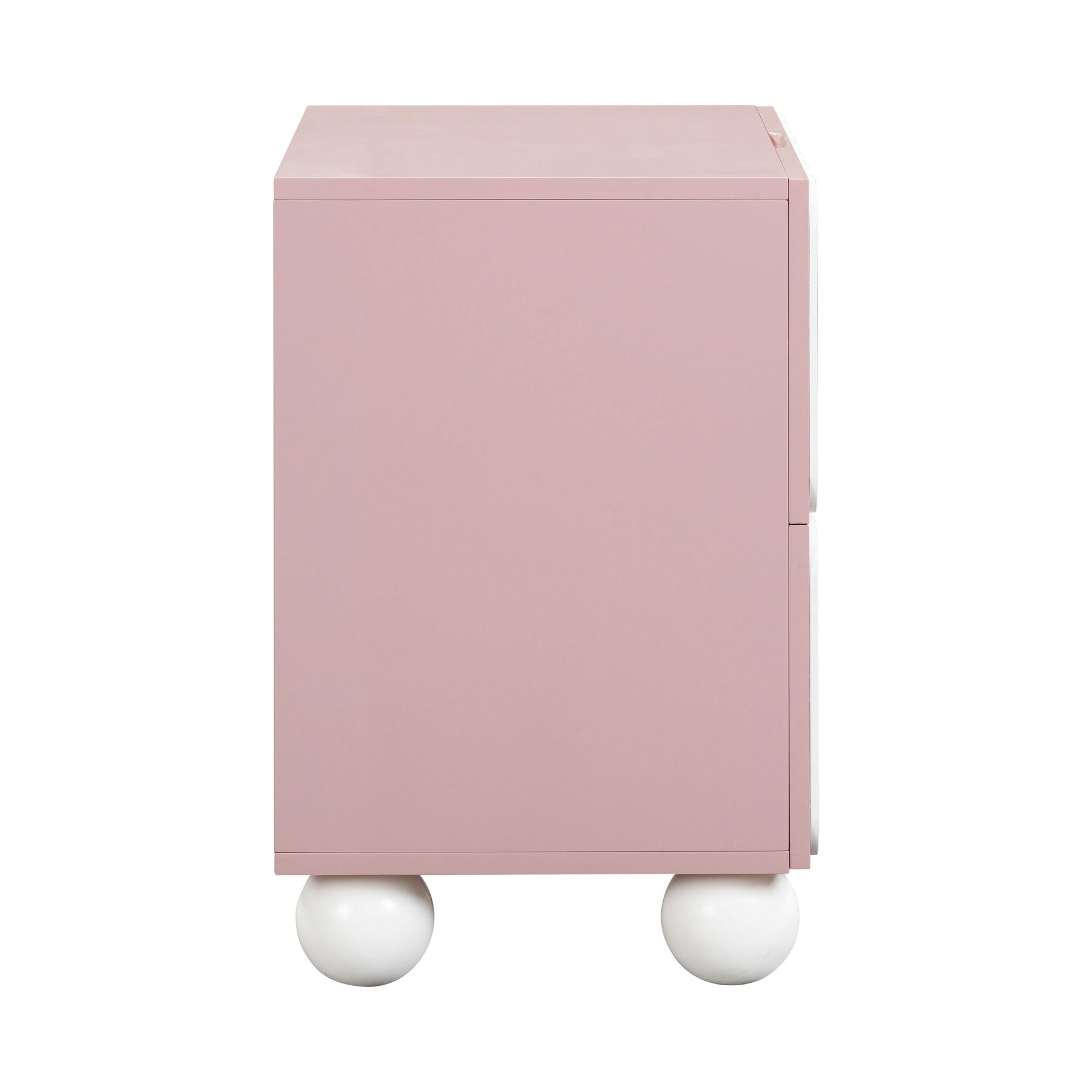 Say goodbye to a boring bedtime routine with the Tori Motif Nightstand, available in dreamy mauve and sophisticated taupe, each featuring a statement-making facade that truly pops. Its solid wood, spherical legs infuse a sculptural Hollywood buzz, while the medium sheen on the surfaces delivers just the right amount of drama without fussy maintenance. Plus, the nightstand's drawers glide smoothly on soft-close rails, ensuring you keep the morning peace, not waking your partner as you start your day.