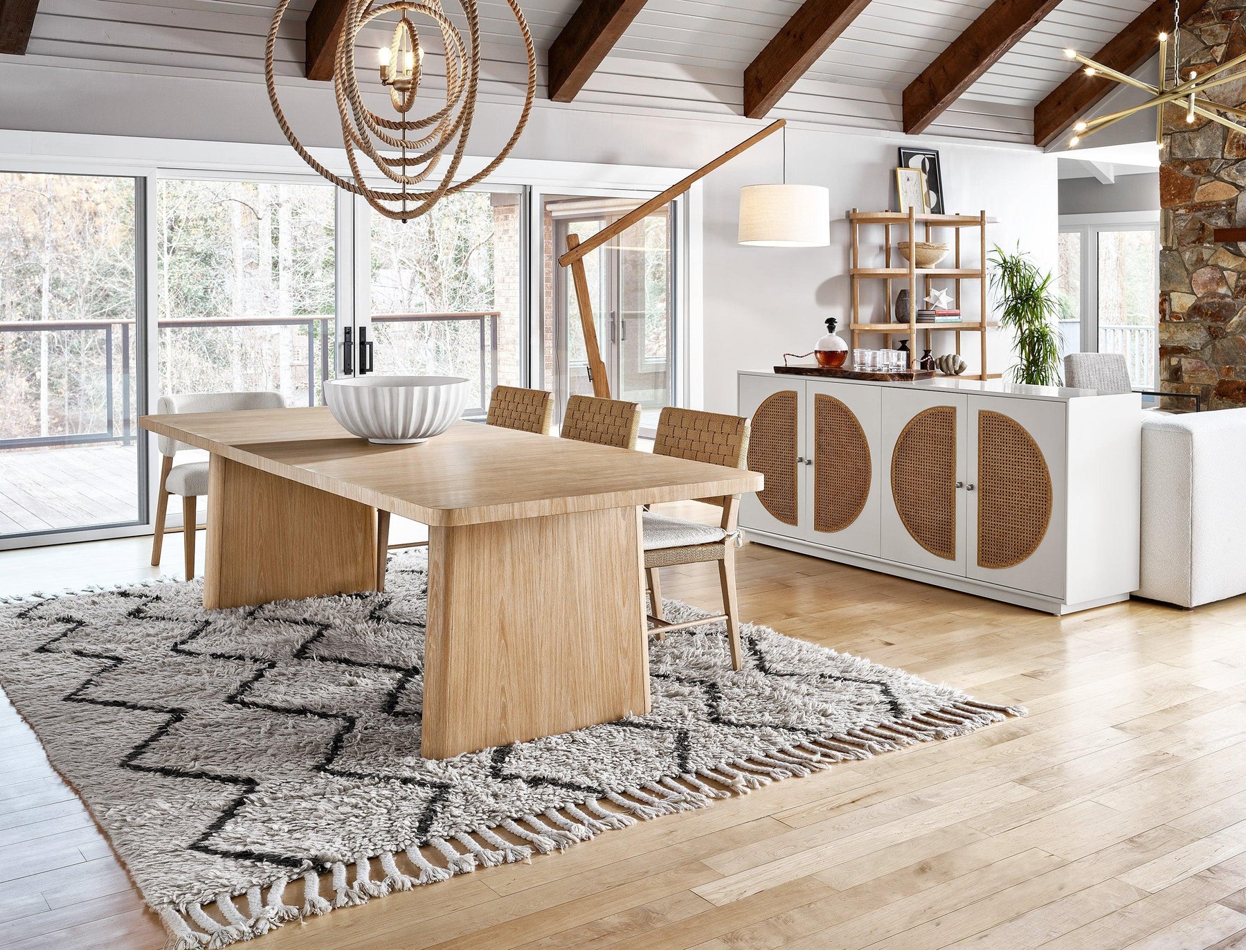 Complete the dining room by pairing with Modern Nomad side chairs or slip-covered dining chairs from the same collection. A coordinating sideboard or buffet adds both storage and a cohesive design thread that elevates the entire room.