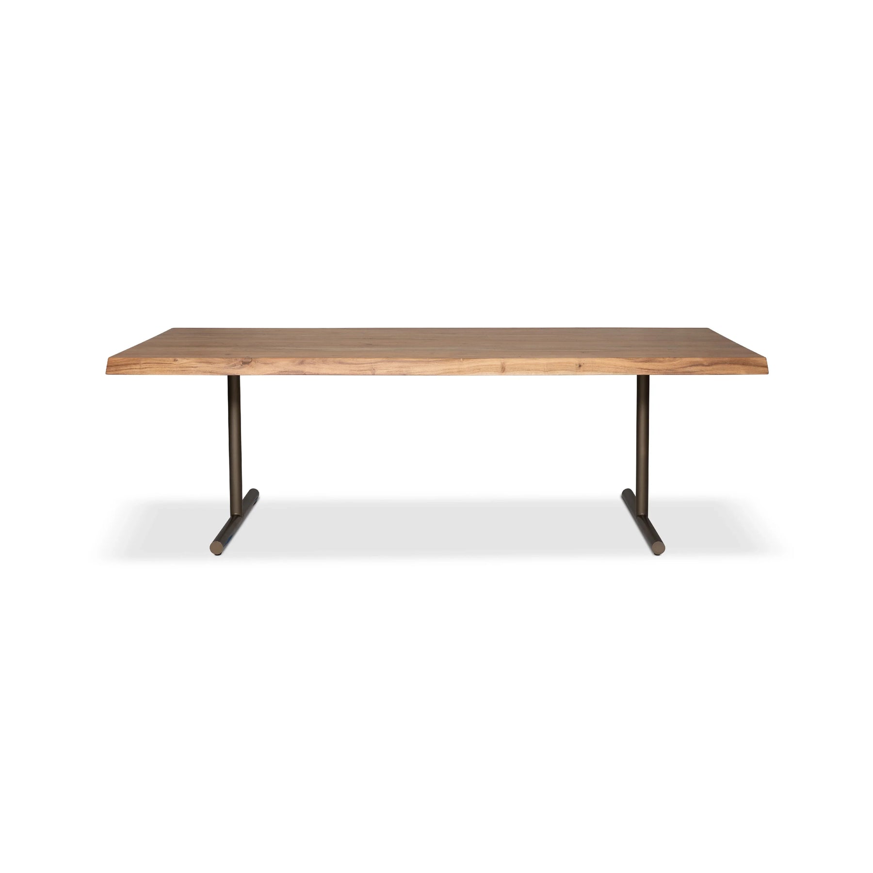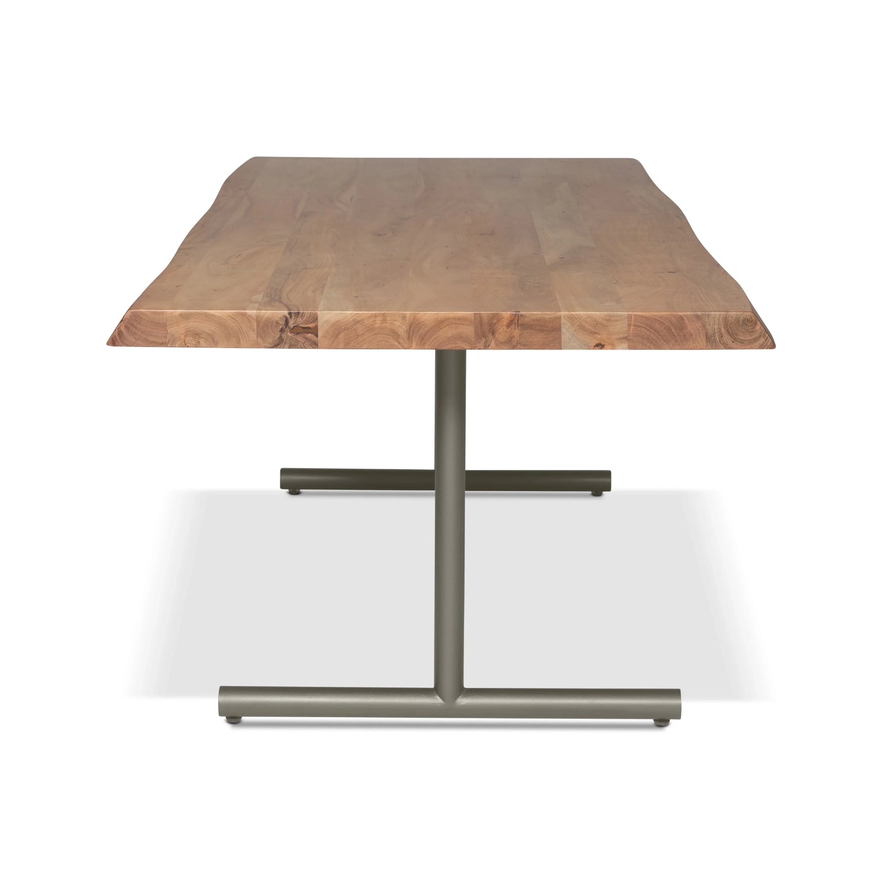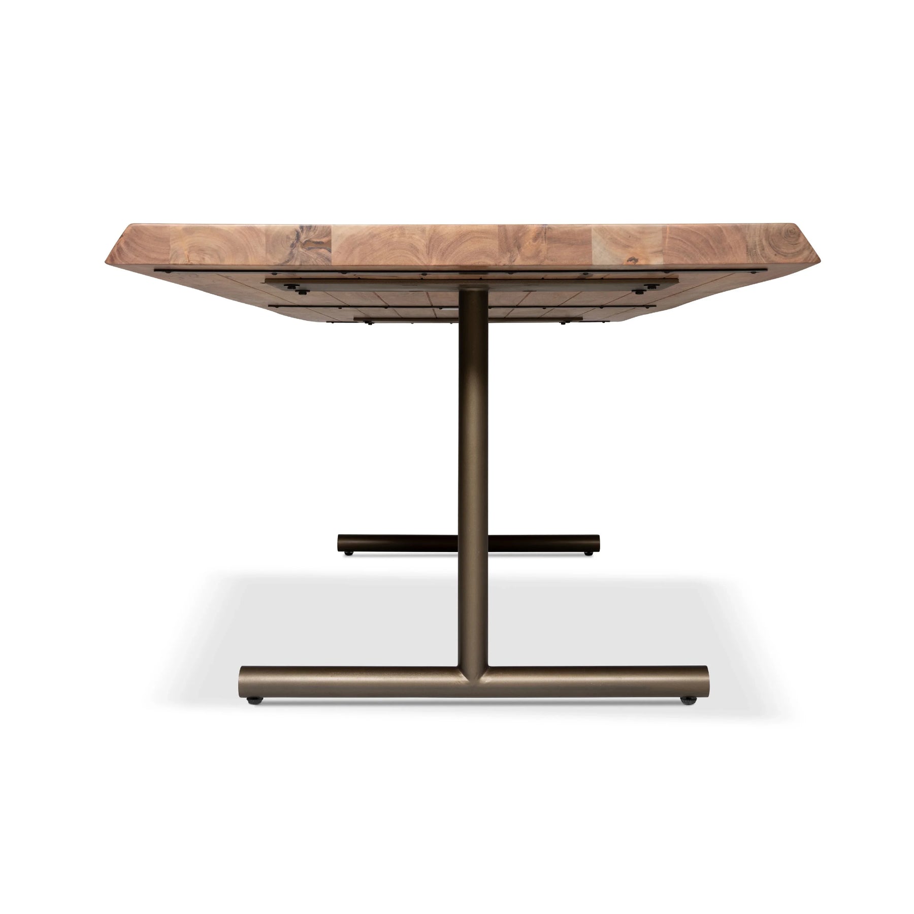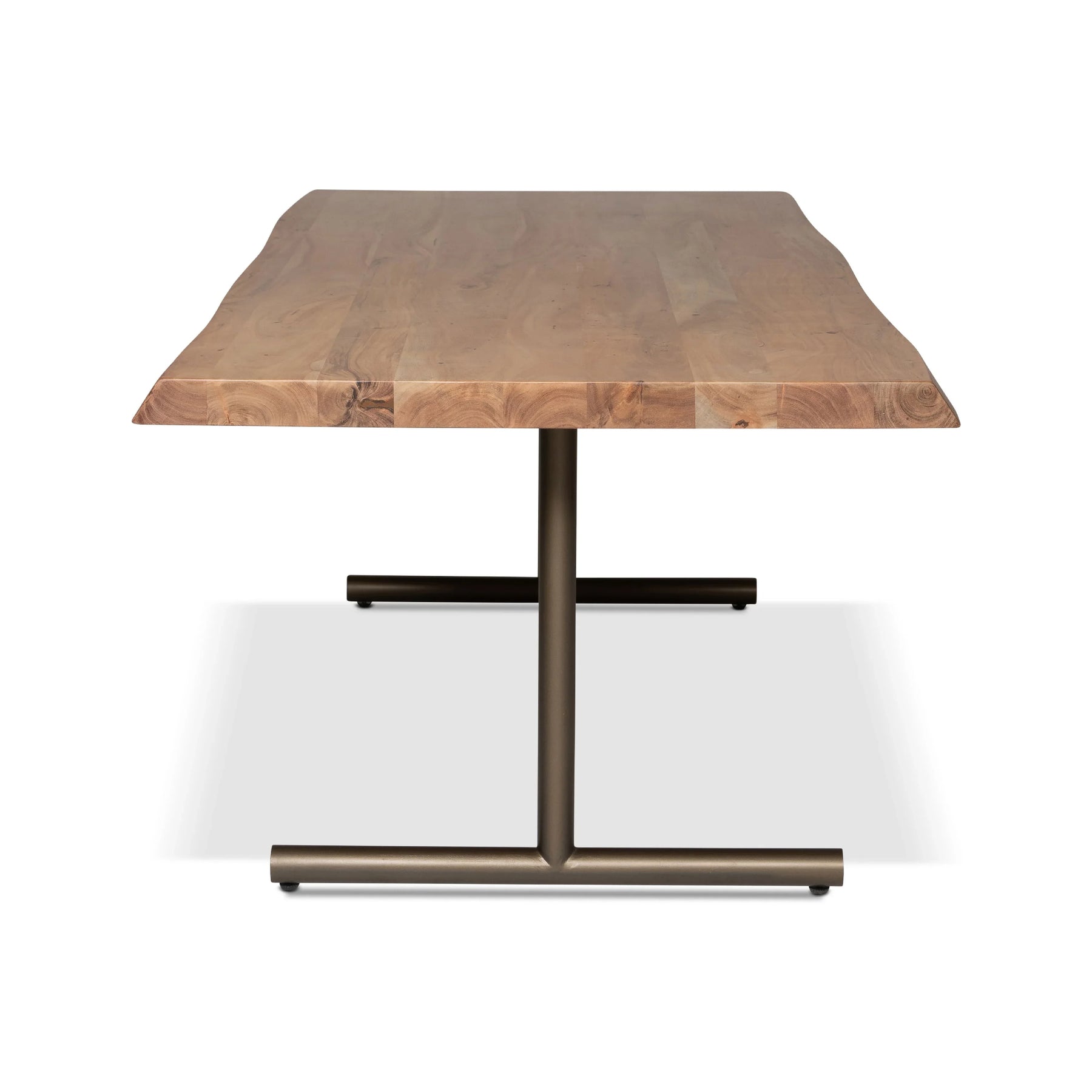 The Urbia Brooks Dining Table with T Base blends contemporary design with long-lasting craftsmanship. Expertly built using solid Acacia wood and a sturdy aluminum base, this modern dining table delivers strength, style, and character. Each tabletop is naturally unique, showcasing organic grain patterns and markings that highlight the beauty of the wood. Perfect as a statement piece, this table offers a bold and timeless presence for any dining space.