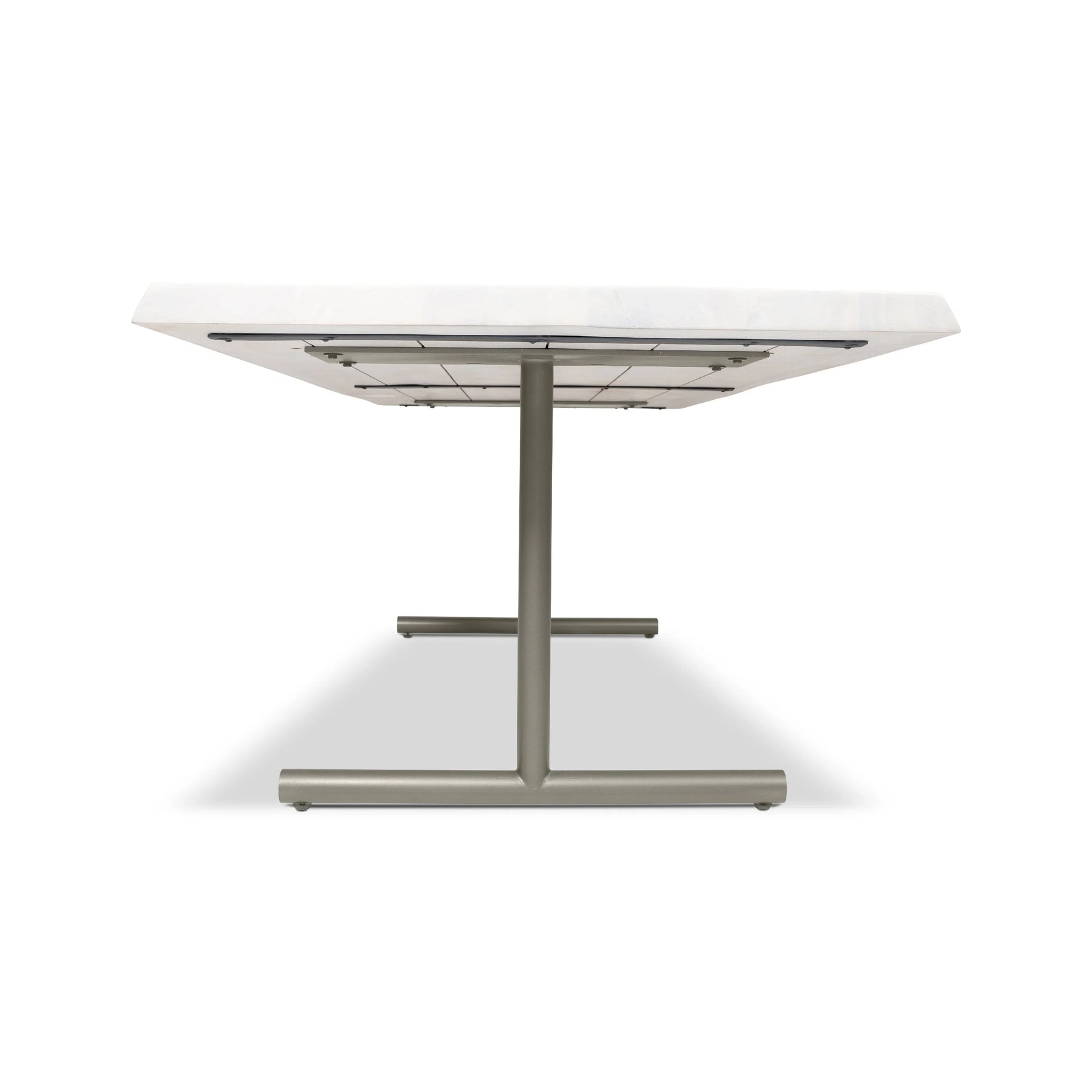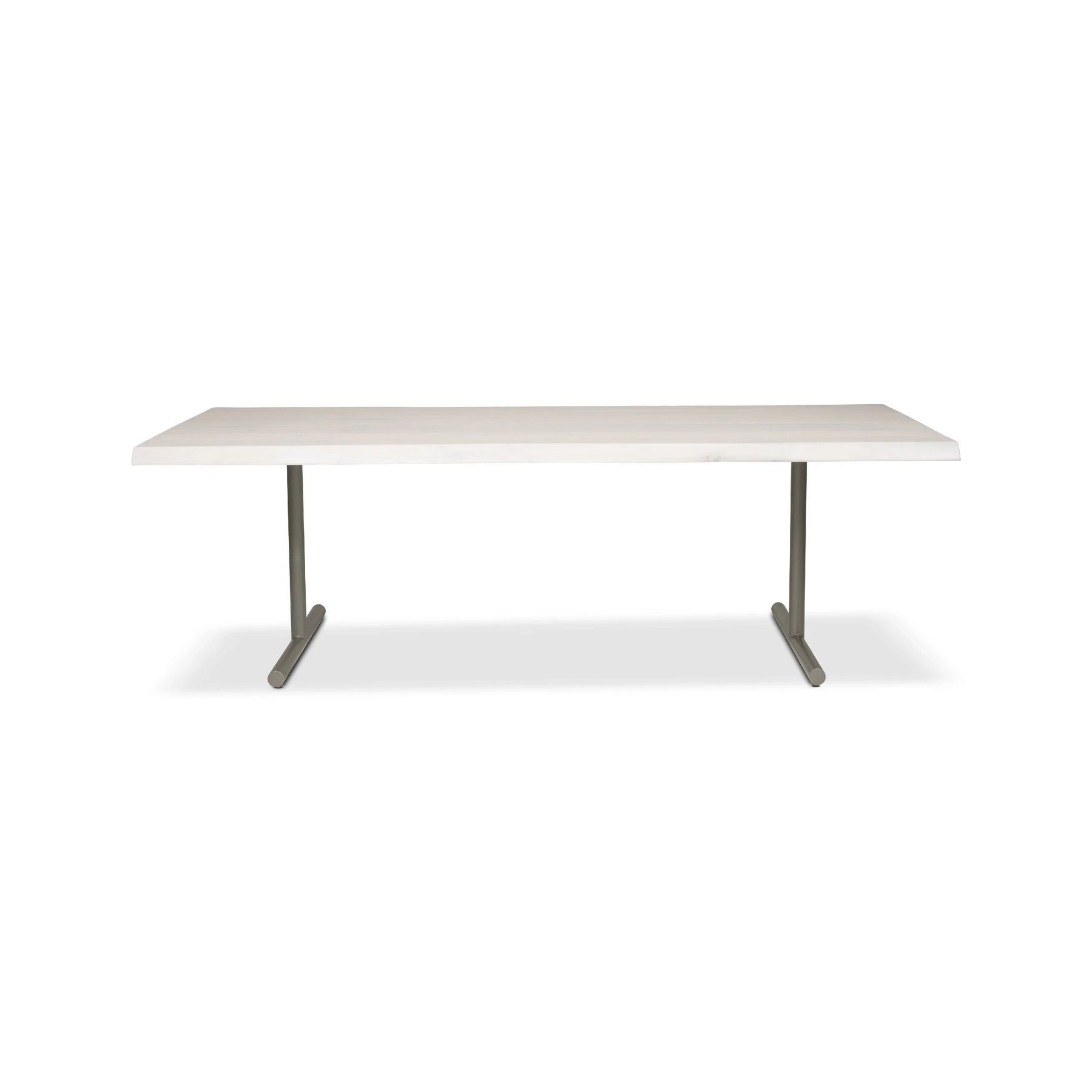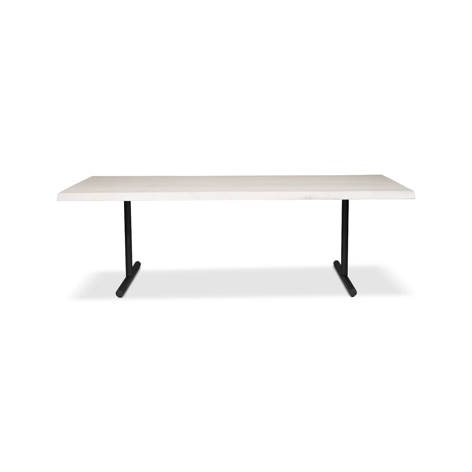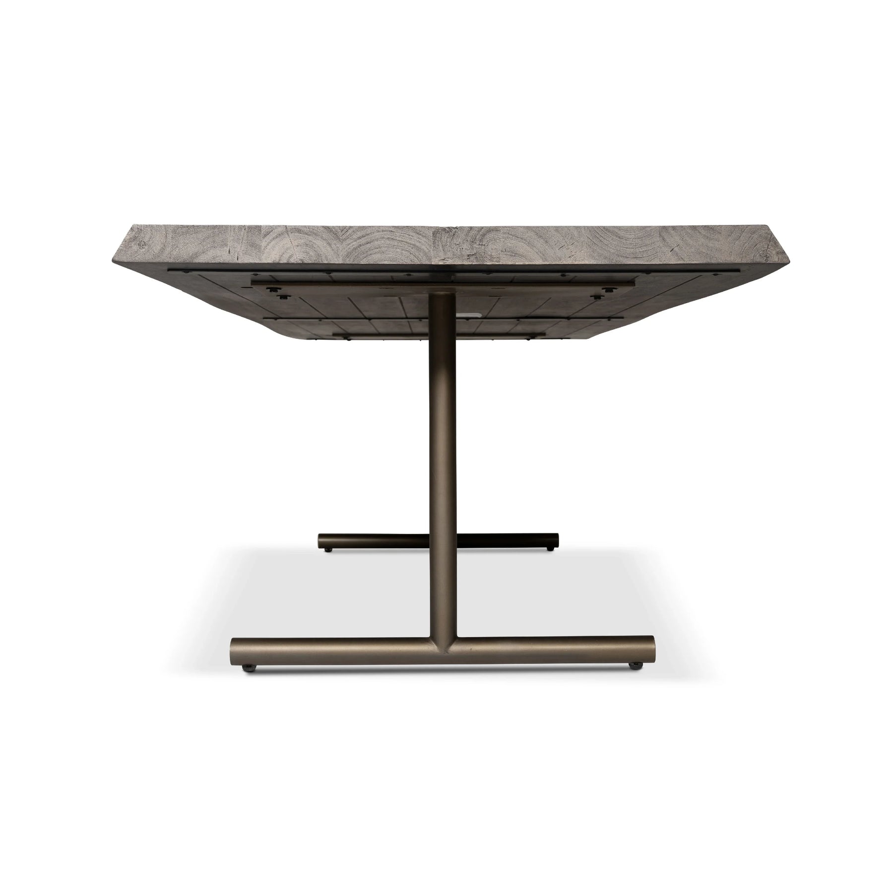 The Urbia Brooks Dining Table with T Base blends contemporary design with long-lasting craftsmanship. Expertly built using solid Acacia wood and a sturdy aluminum base, this modern dining table delivers strength, style, and character. Each tabletop is naturally unique, showcasing organic grain patterns and markings that highlight the beauty of the wood. Perfect as a statement piece, this table offers a bold and timeless presence for any dining space.