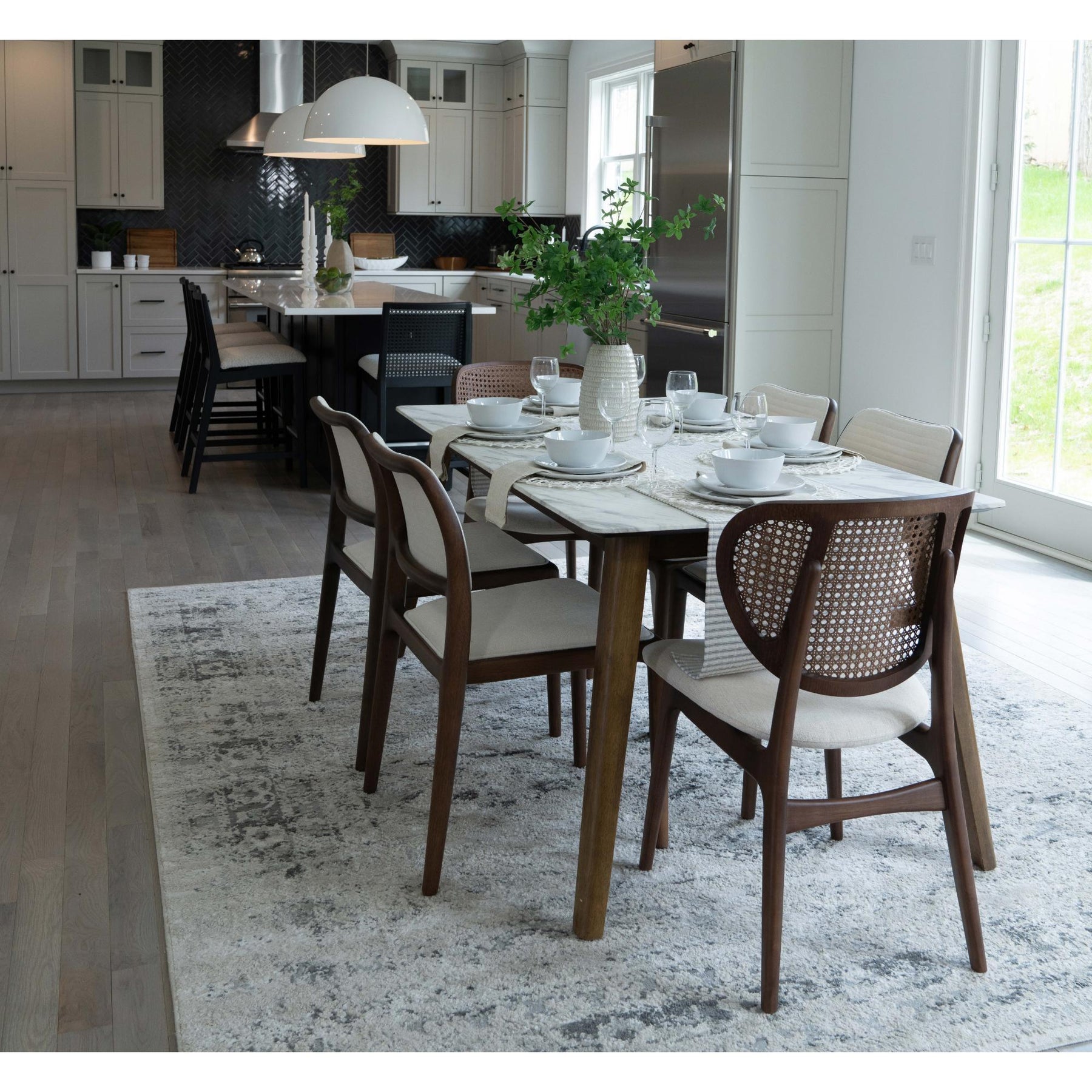 Crafted in Brazil, the Joelma Cane Side Chair showcases exceptional design and craftsmanship. Its solid Tauari wood frame establishes a sturdy foundation while exuding timeless elegance. Clean lines and a thoughtful combination of mixed materials define this chair, with a solid Tauari wood frame, an upholstered seat, and a natural cane back. The slightly curved upholstered seat ensures added comfort, making it an ideal choice for dining or various occasional environments. The cane back, curved for both comfort and design appeal, adds a touch of visual interest to the chair.