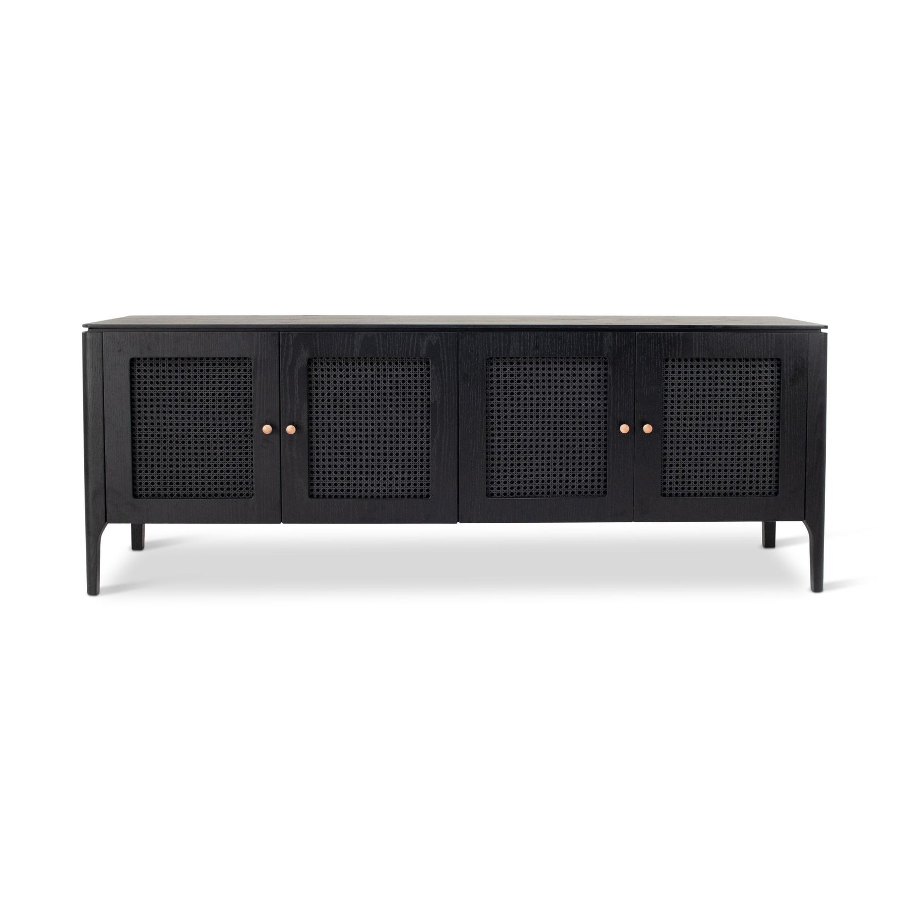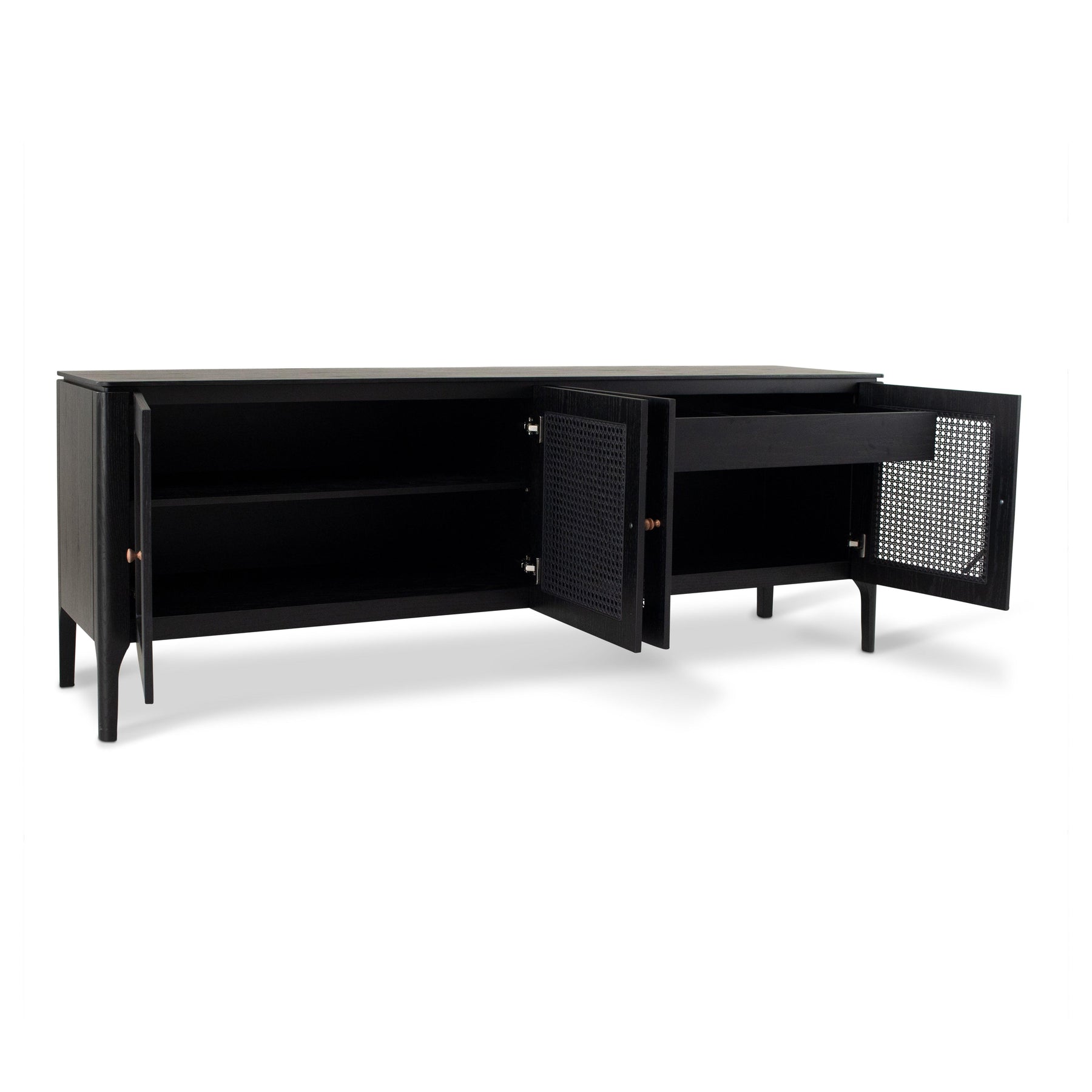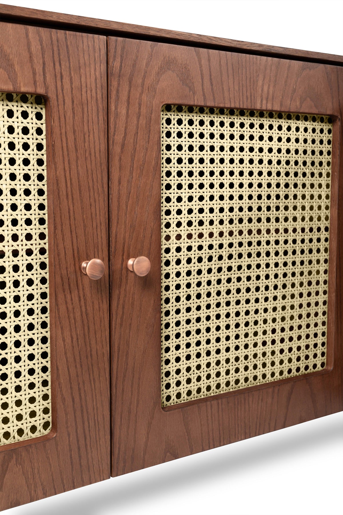 Meticulously crafted in Brazil, the Missione Cane Buffet presents a captivating blend of style and functionality. Suitable for both living and dining spaces, this buffet showcases clean lines and a contemporary aesthetic. The natural cane cabinet door fronts and veneer case add an organic charm to its design. With four doors, it offers ample storage for your living and dining essentials.