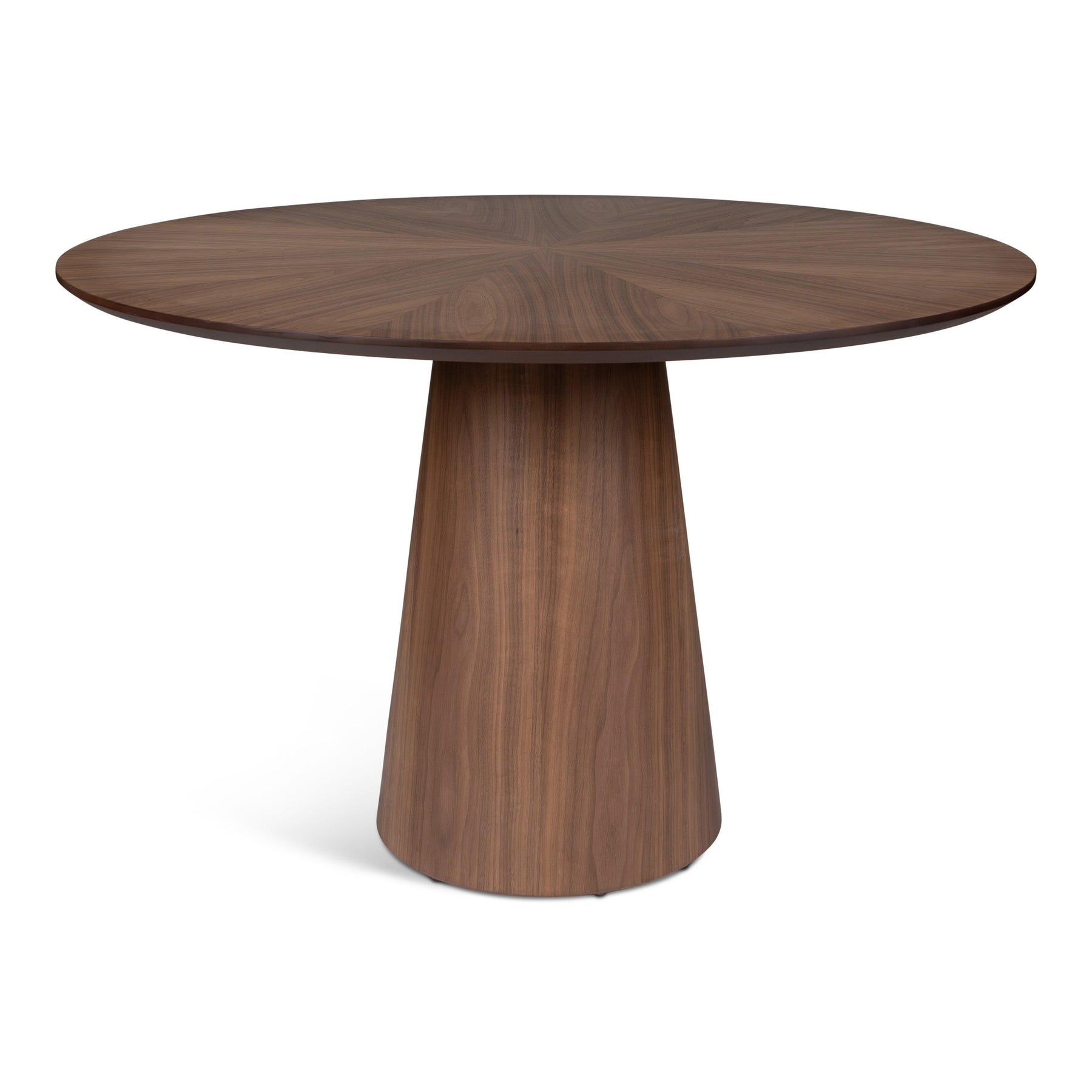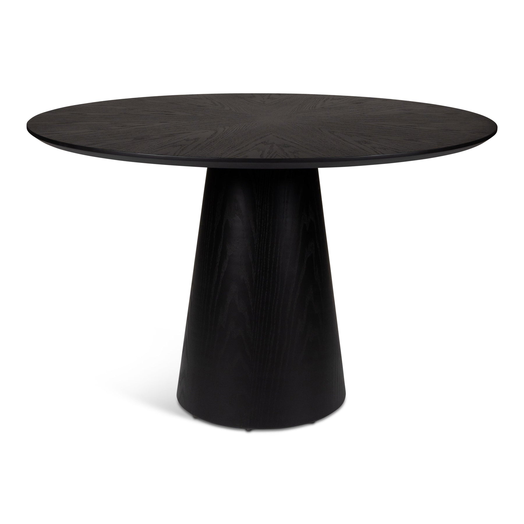 The Mona Wooden Top Round Dining Table exudes modern elegance and expert craftsmanship. Its captivating round top, crafted from fine wood veneers with meticulous beveled edge detailing, offers a stunning visual appeal. Supported by a corresponding conical pedestal base crafted from the same fine wood veneers, this table embodies a seamless blend of design and artistry. Bringing contemporary allure into your dining space, it harmonizes the warmth of wood with a sophisticated aesthetic.