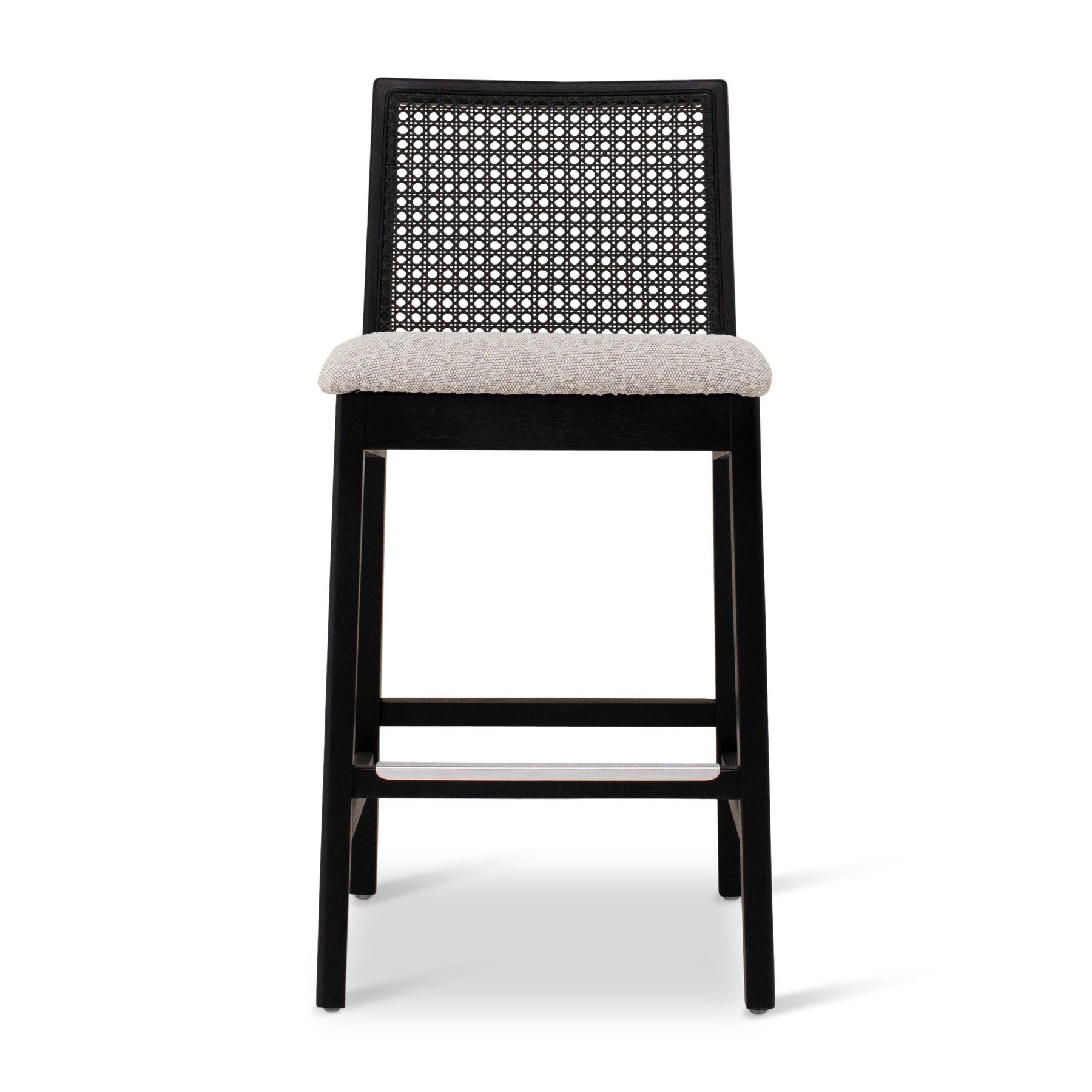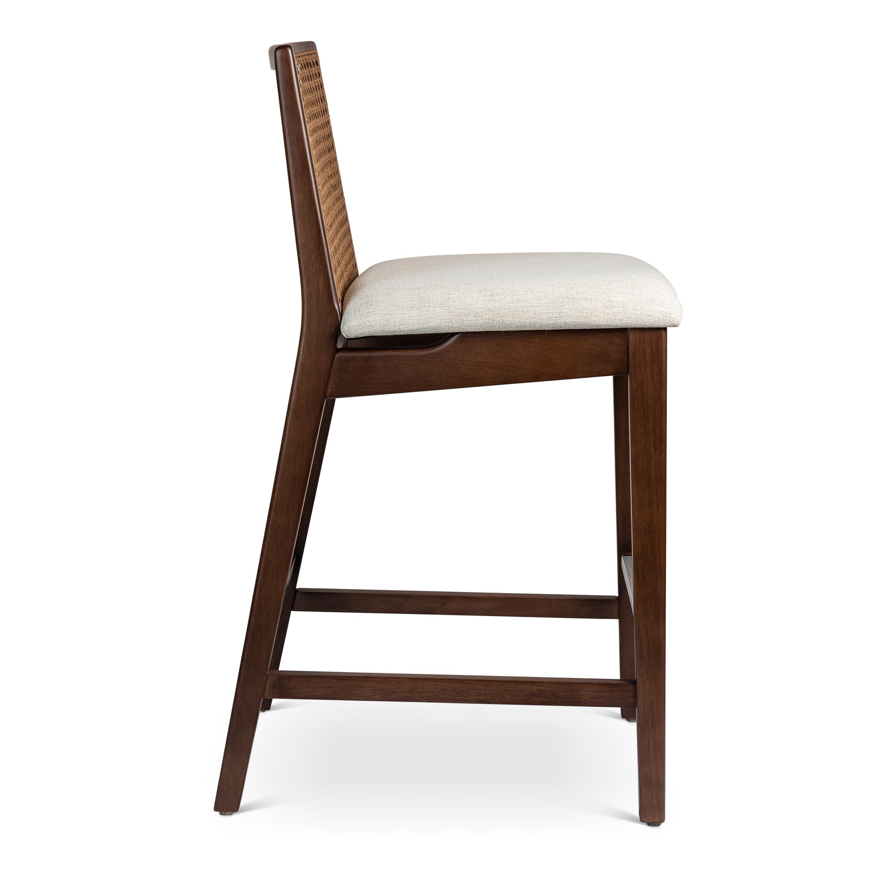 Skillfully crafted in Brazil, the Nardia Cane Counter Stool is a seamless fusion of transitional charm and contemporary design. Crafted with a solid Tauari wood frame, this bar stool exudes durability and natural beauty. The seat is adorned with plush woven fabric, providing superior comfort. The back showcases a captivating combination of solid Tauari wood and hexagonal weave cane webbing, adding an organic texture and timeless allure. With its versatile aesthetic, this bar stool effortlessly complements various interior styles.
