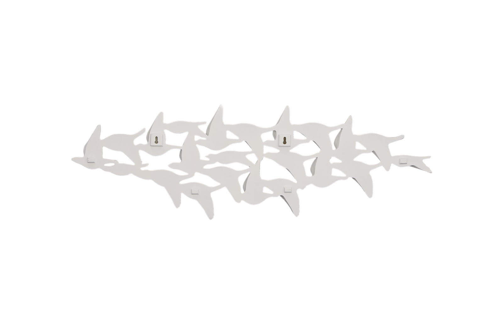 Traveling gracefully together in a season of migrating; Our Flock of Birds Wall Art will have an impact on your interior space and will give dimension and depth. Made from artisan-grade resin and finished in matte black, this playful piece of dimensional wall decor features over twenty birds flying from various lengths from the wall that lends an element of depth to the piece.