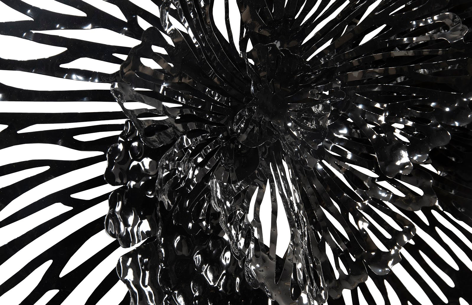 The lacy artistry of the Medium Black Flower Wall Art will make a dramatic statement on its own; arrange it alongside a variety of different sizes in the same chic black, and you bring a room a massive dose of loveliness. The filigree effect of the profile, which is cut from metal and powder coated for a rich, lasting finish, will throw textural shadows on surrounding surfaces that will evolve with the movement of the sun. If black is not the perfect color for a space, we offer the floral wall sculptures in a number of colors, from copper, blue and yellow to red, gray and ivory. Each of the offerings in this collection reflects the ethos that Phillips Collection personifies: modern organic.