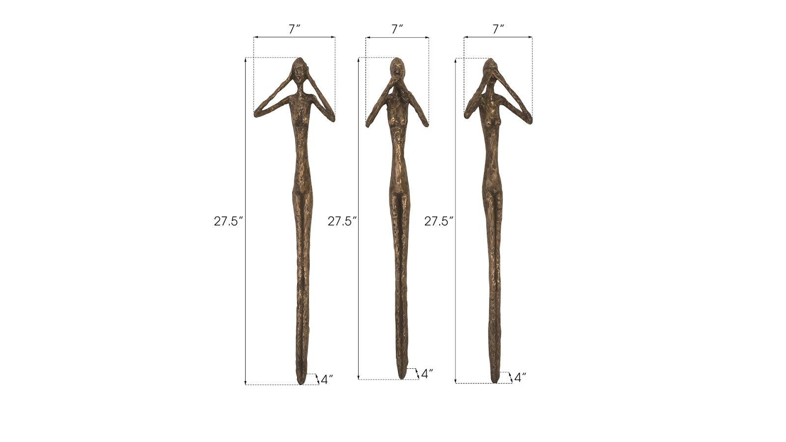 Thin is in, as the saying goes, which means the See, Hear, Speak No Evil Bronze Wall Art Set will be a remarkably popular decorative accessory in any décor style. Designer Raymond Waites has created this family of decorative sculptures, one of our most popular collections. The pared-down sculptures are cast in composite and finished with actual bronze powder to make them feel like metal. We also offer the wall art set in a silver finish. Each of these reflects the ethos that Phillips Collection personifies: modern organic.