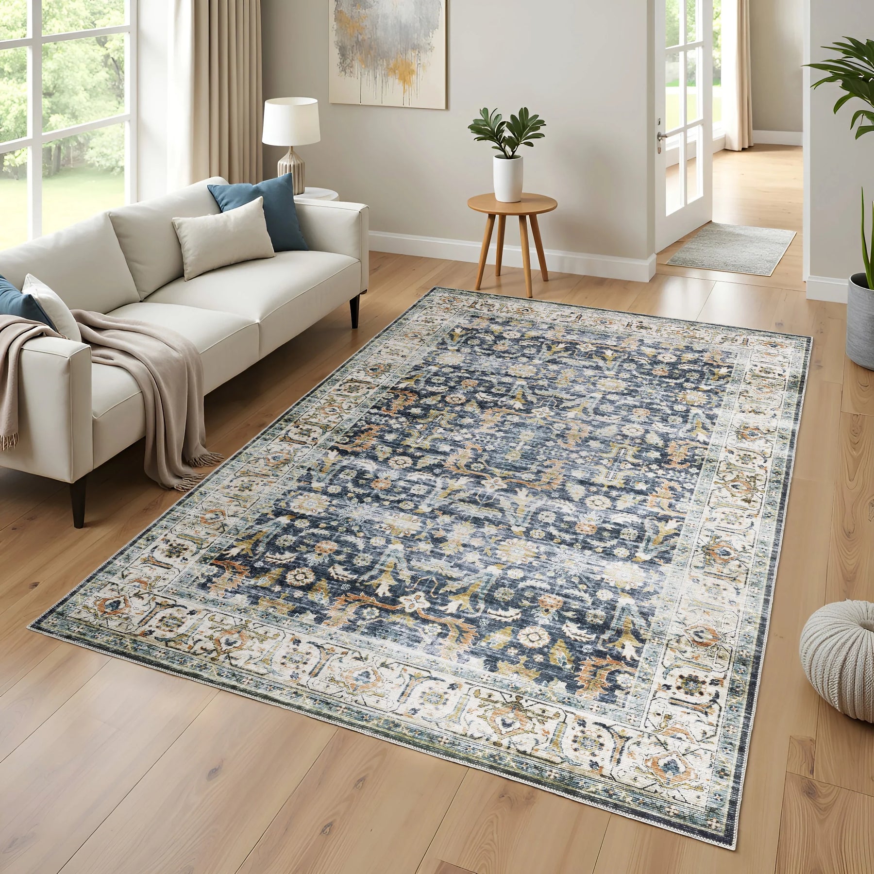The Charleston collection, machine made of 100% polyester, features an innovative, machine washable printed base, with non-slip backing that is perfect for high-traffic areas and family friendly living spaces. With its low-profile construction and intricate blanket stitch finish, Charleston showcases distressed traditional designs that will accentuate any room in your home.