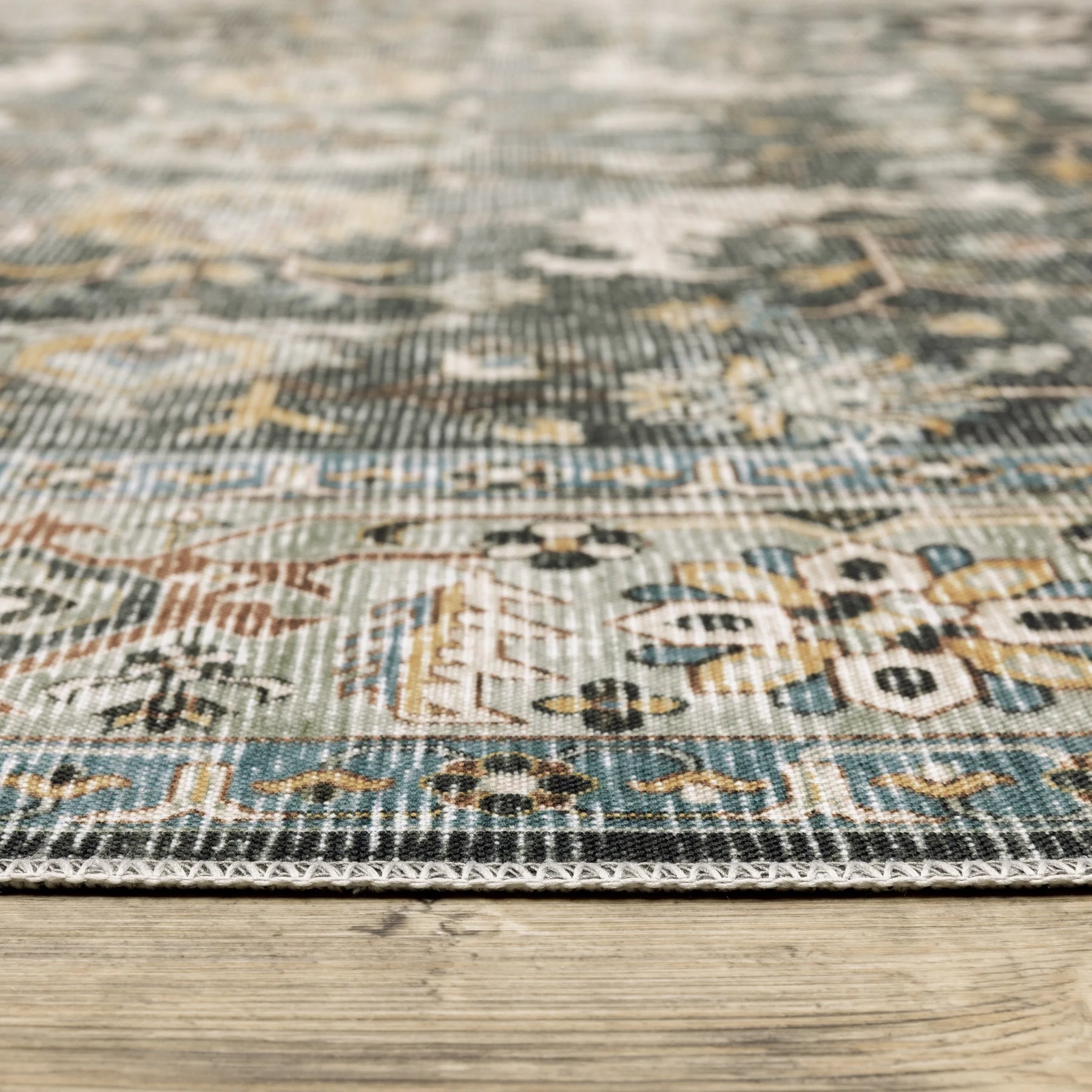 The Charleston collection, machine made of 100% polyester, features an innovative, machine washable printed base, with non-slip backing that is perfect for high-traffic areas and family friendly living spaces. With its low-profile construction and intricate blanket stitch finish, Charleston showcases distressed traditional designs that will accentuate any room in your home.