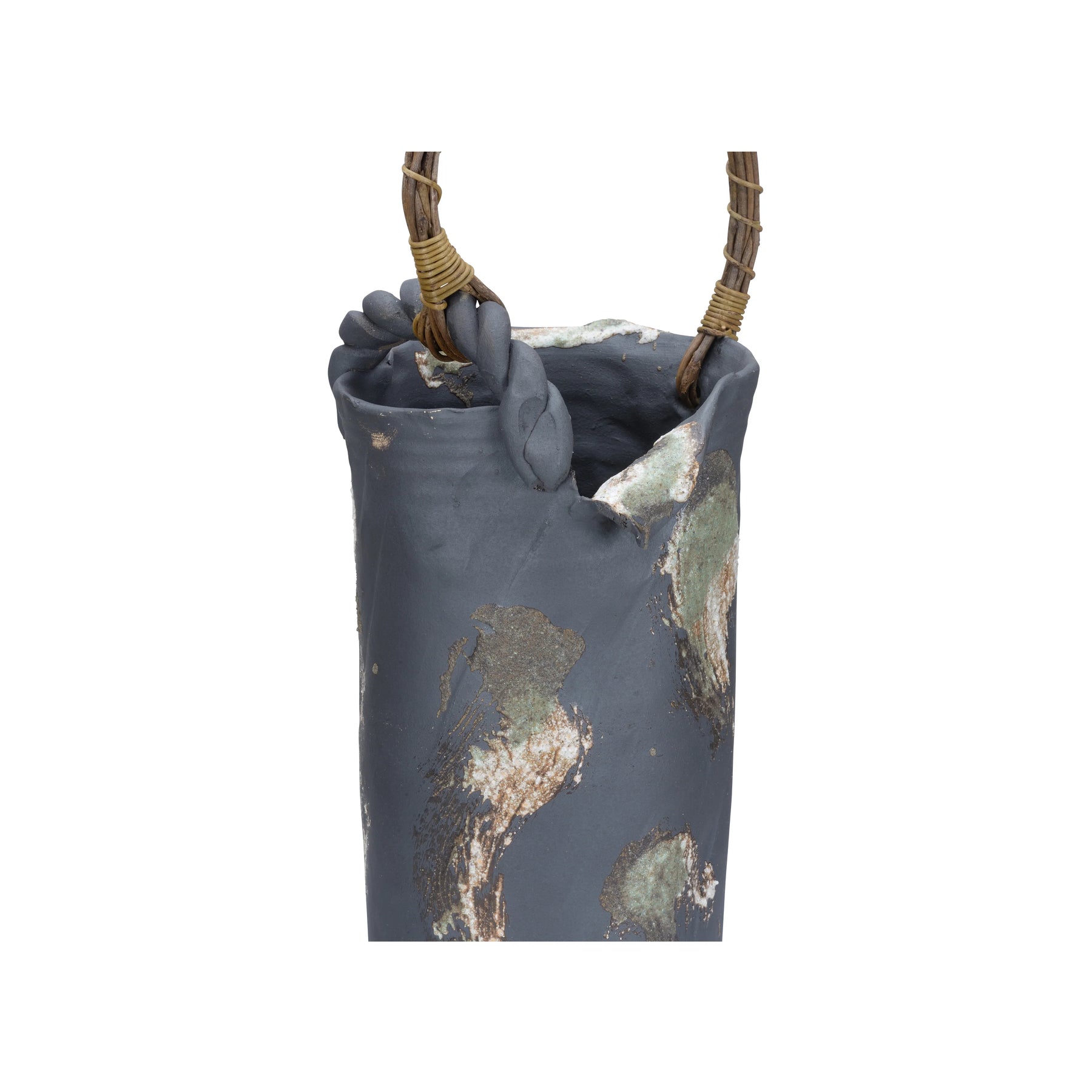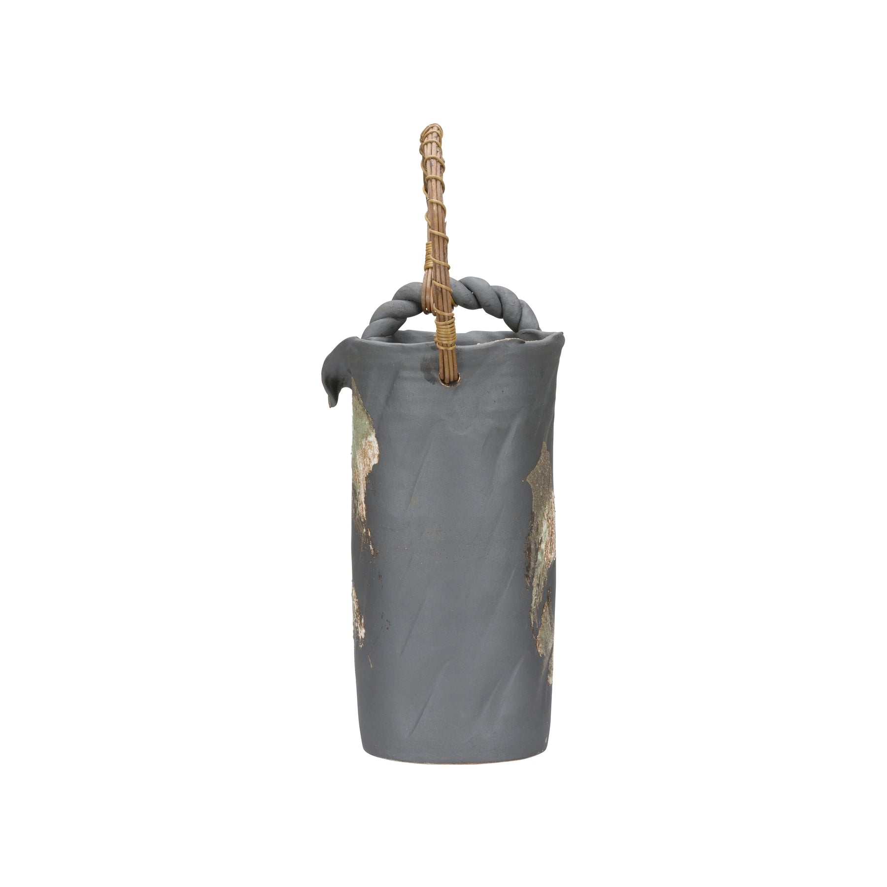 The Tea Ceremony Vase with a wisteria vine handle is hand turned in Japan. The size is intended for large arrangements, traditionally used in Japanese Tea Ceremony parties. Made in Japan.