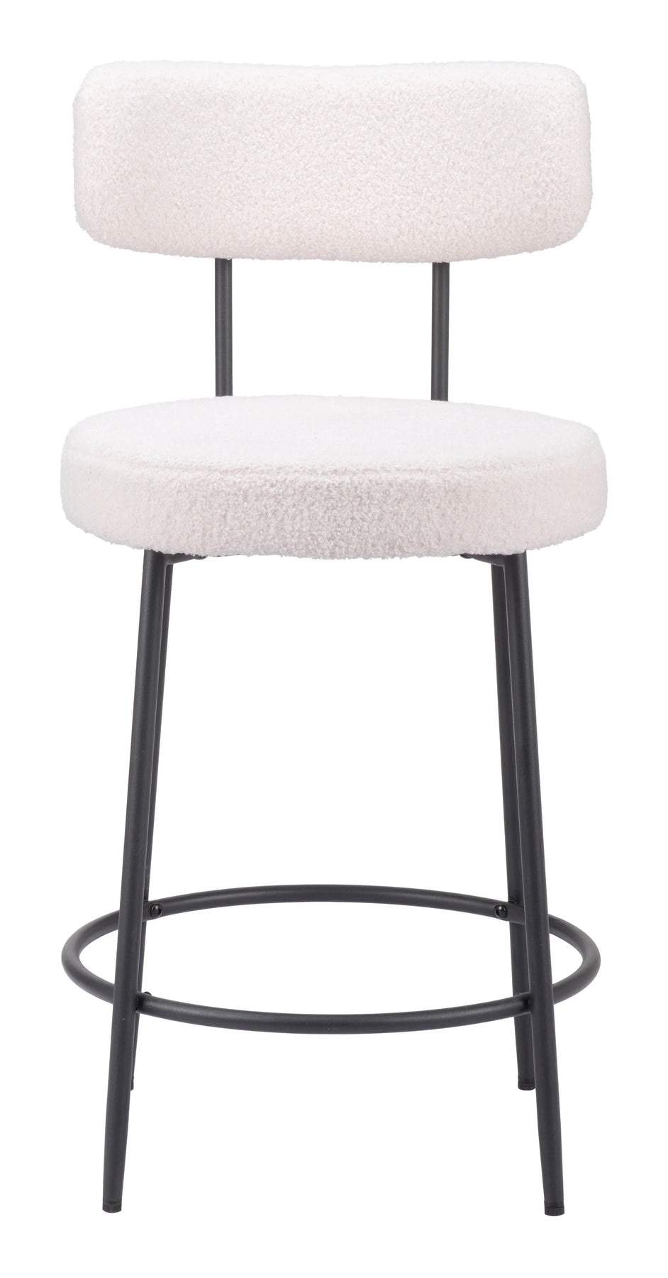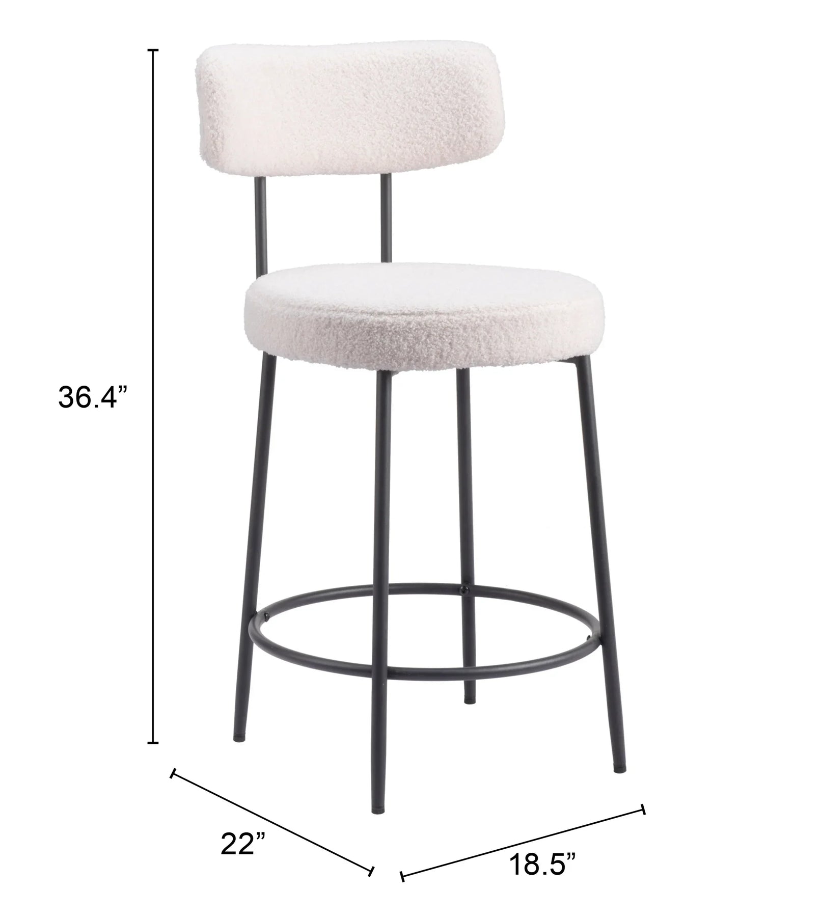 The seat of the Blanca Counter Stool is made from a soft and durable shearling-style fabric that provides both comfort and style. The ivory color of the fabric adds a touch of sophistication to the overall design of the stool. The steel frame of the stool is sturdy and durable, providing long-lasting support and stability. The modern design of the stool makes it a perfect fit for any contemporary setting, whether in a hotel bar or a home kitchen.