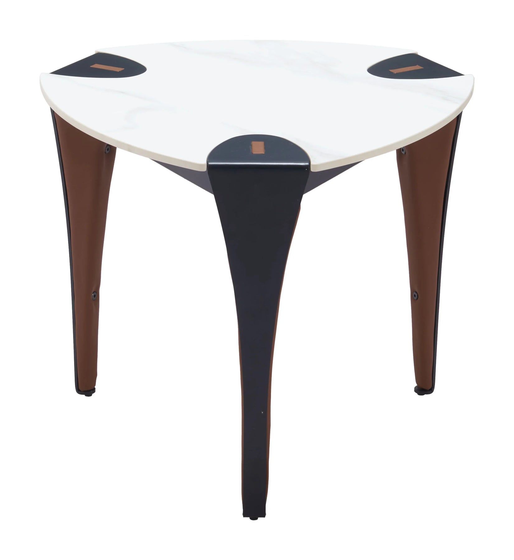 Meet the Bogey Side Table, a perfect fusion of elegance and durability. Its sintered stone top offers both visual appeal and resilience, while the steel legs are expertly wrapped in vinyl for a sleek finish. This side table is a versatile addition to any space, whether it complements your living room decor or adds a modern touch to your office setup. The Bogey Side Table not only provides a stylish surface for your essentials but also exudes contemporary sophistication. Elevate your decor with the Bogey Side Table, where form meets function in perfect harmony.