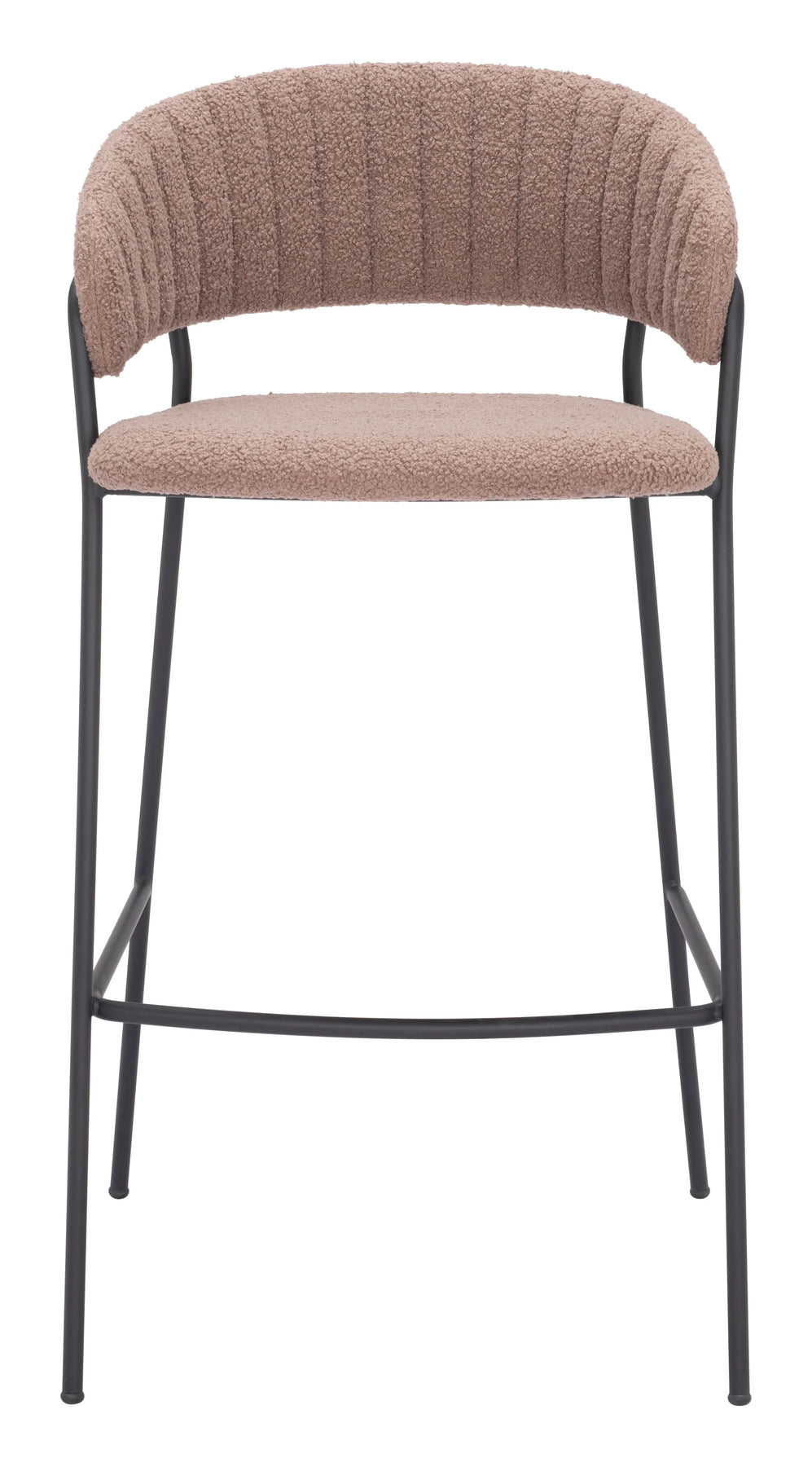 This barstool has a beautifully wrapped seat and back with a fine frame. This chair combines mid-century modern with glam and decor elements and works well in space, residential, or hospitality.