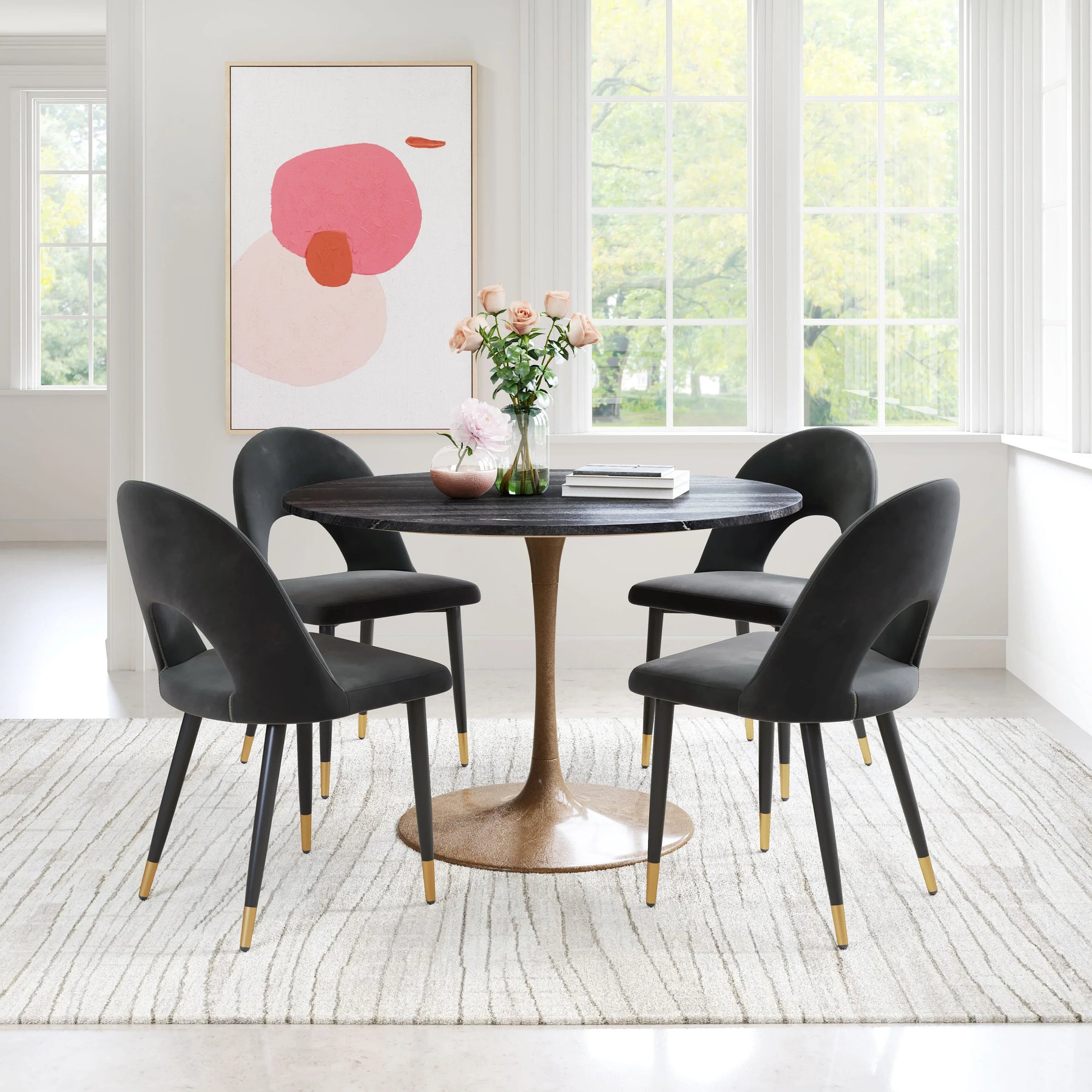 With a new deco-modern look, the Menlo Chair is wrapped in polyester and sits on top of a powder coated steel base. This chair pops any dining space, glam, boho chic, or modern.