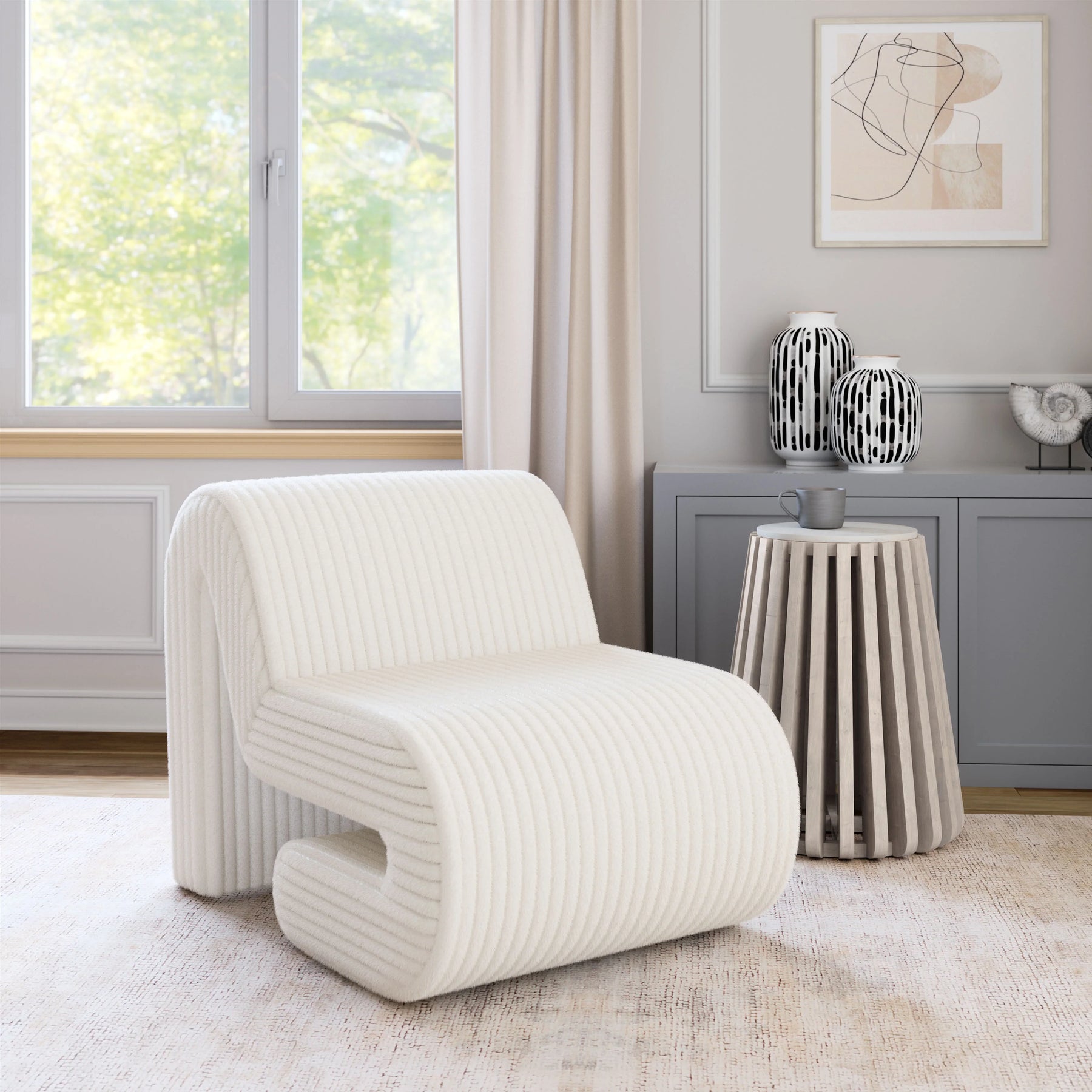 Introducing the Opam Accent Chair in White – a harmonious fusion of modern, deco, and glam styles designed to enhance any space. Crafted with a sturdy plywood frame, this chair exudes both durability and elegance. Its sumptuous thick soft cord-style fabric upholstery not only adds a touch of opulence but also ensures your comfort. The Opam Accent Chair's versatile design makes it a perfect fit for a chic hotel lobby, a cozy living room, a trendy bar, or a luxurious bedroom. Its sleek lines and minimalist aesthetic effortlessly complement various decor schemes, while the timeless white color radiates sophistication.