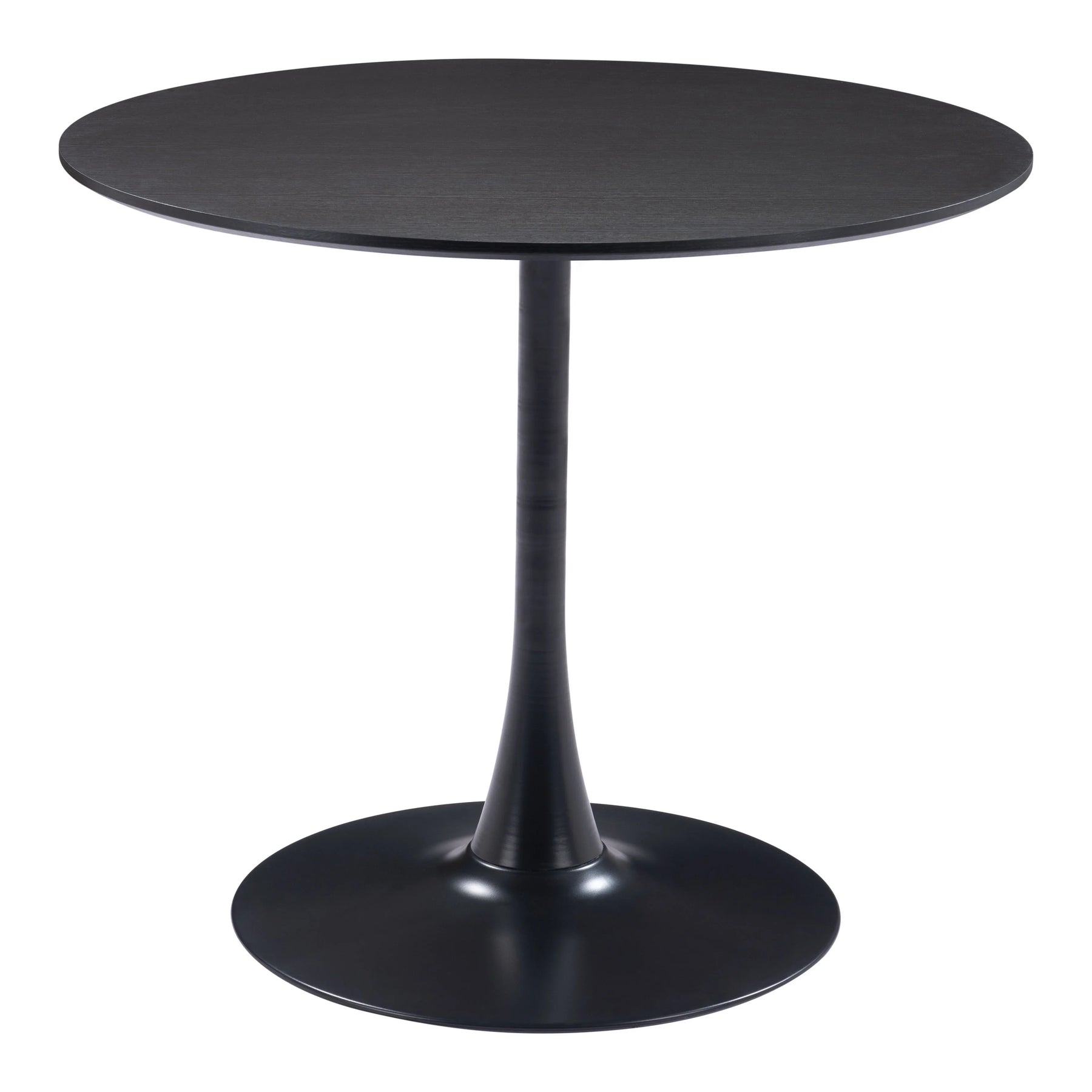 A stylish and hardworking table for all of your spaces: kitchen, living room, office, or bar area. A disc floats on a pedestal that appears to emerge from the ground.