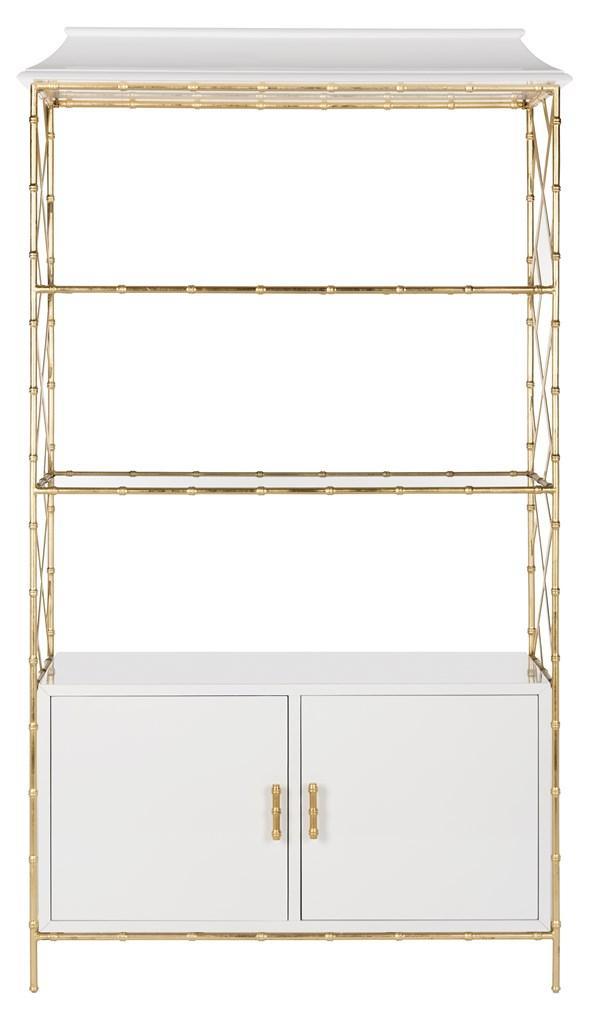 Designed for the contemporary tastemaker, this modern lacquer bookshelf is a new classic. Inspired by artisanal metalwork, its gold leaf hardware frames life's treasures, while its white lacquer finish is the focal point in into any living room or office.