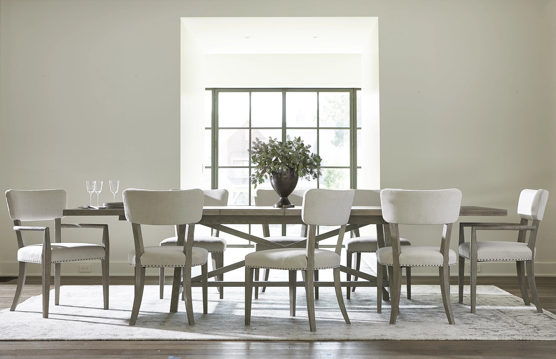 Pewter Finish. Upholstered Seat And Back. Flat Self-Tape. #44 Nail-Head Trim Around Seat Bottom. Assigned Fabric B585. Glides.