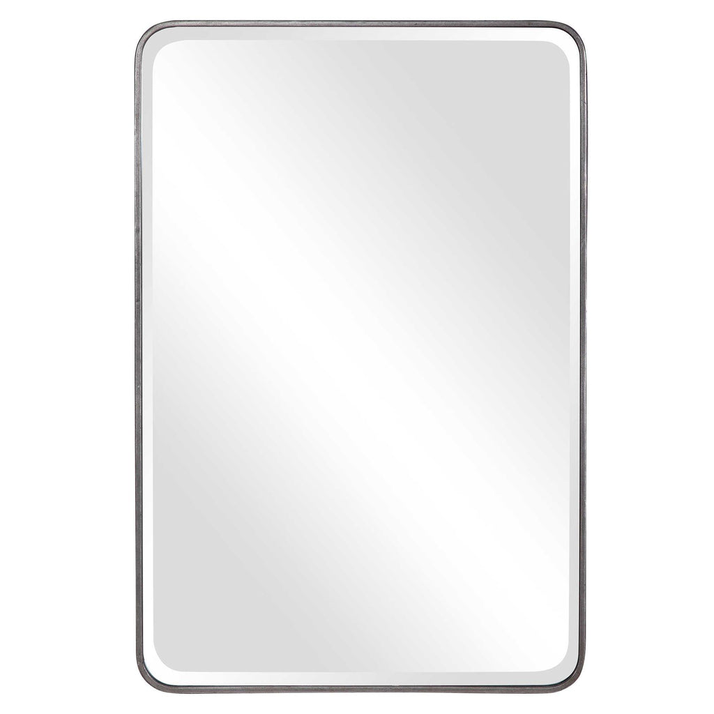 This Iron Frame Is Finished In Lightly Distressed Silver Leaf Featuring Gracefully Curved Corners, And A Generous 1 1/4" Bevel. May Be Hung Horizontal Or Vertical.