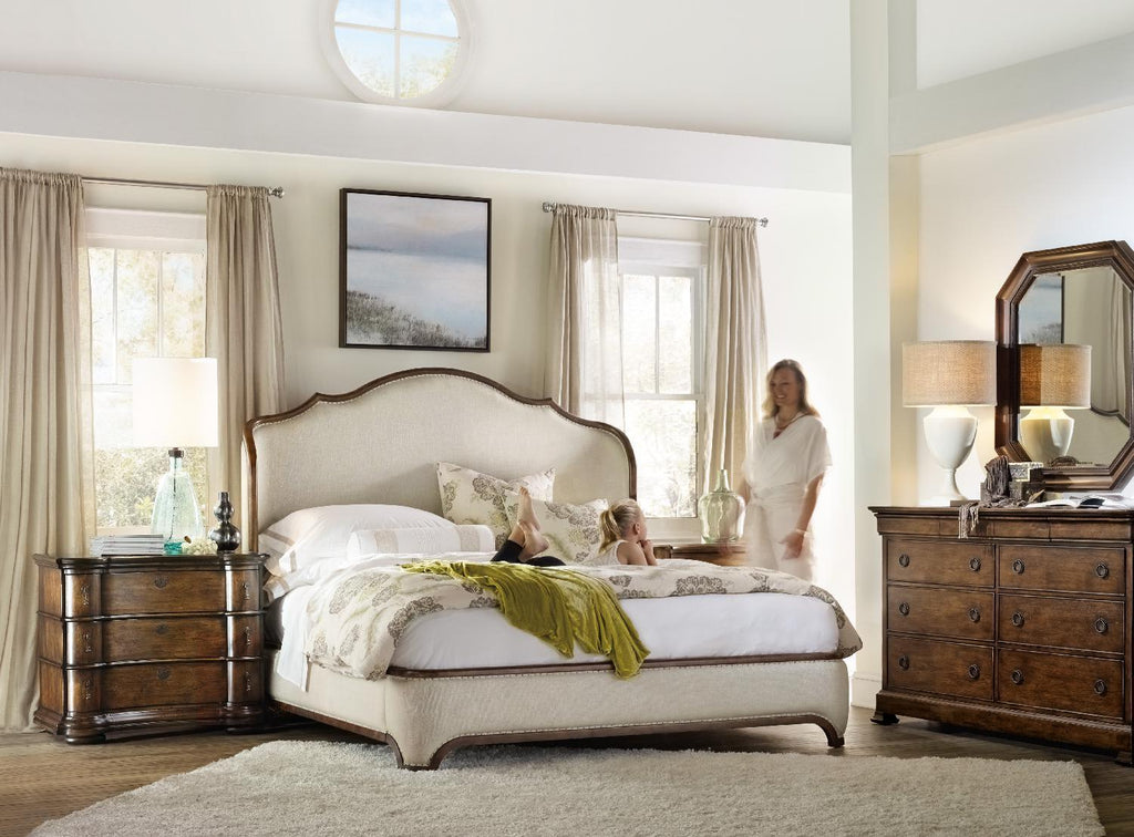 A softly curving concave front, ornamental shield-shaped escutcheon hardware and tear-drop-shaped pendants in a time-worn bronze color, along with chic bun feet, come together to create a piece that embraces both grand elegance and beloved, time-honored forms. Featuring a soft casual pecan-colored rustic finish, practical storage is offered in this chest with its 3 roomy drawers, including a cedar-lined bottom drawer and drop-in felt liner in the top drawer. There’s also a touch-light with dimmer switch and cord clip for electronics.