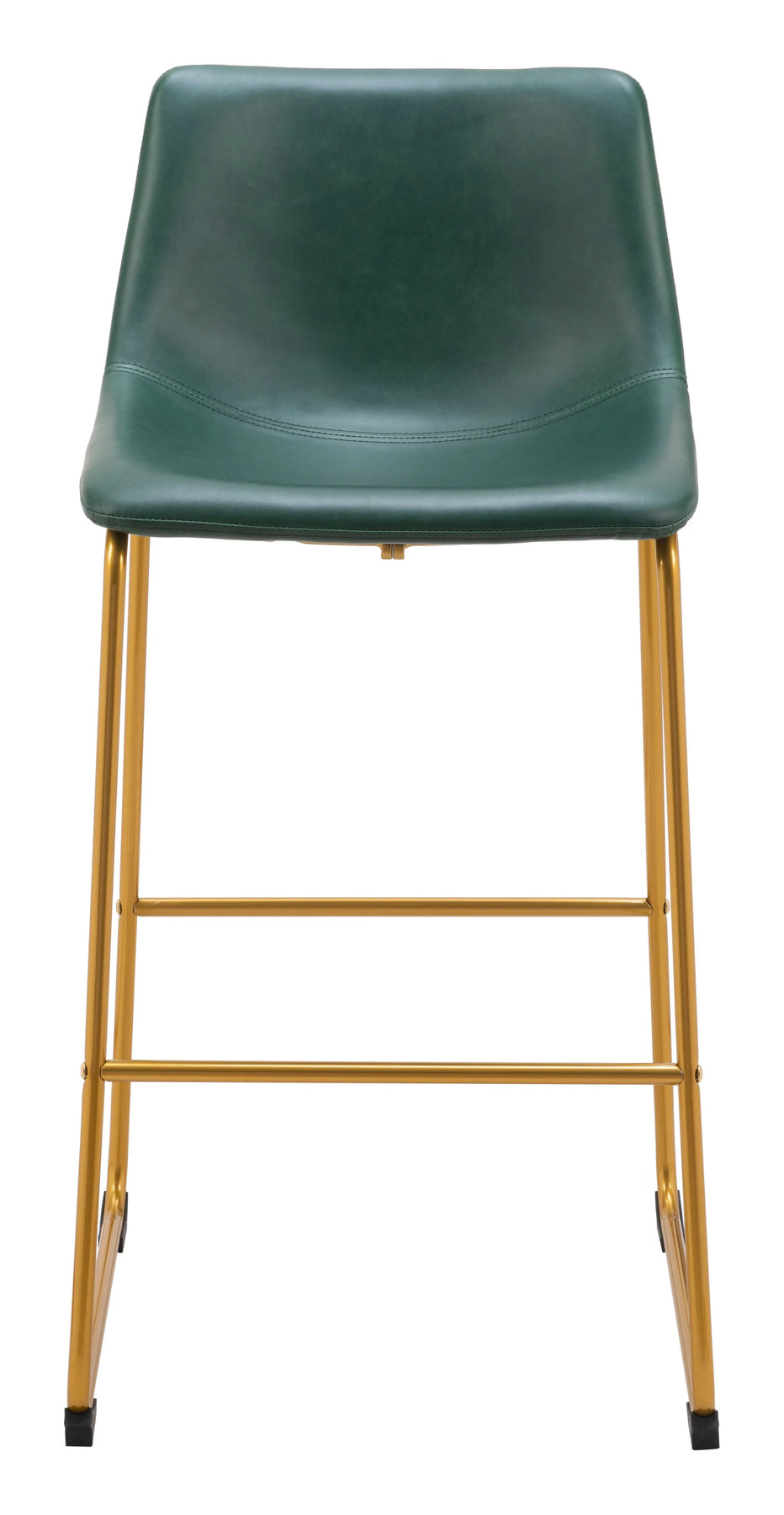 The Augusta Barstool seat and back are built with a sculpted design for comfort, It's upholstered in a soft 100% Polyurethane fabric, with a slim profile metal base and two crossbars for stability. The frame is powder coated steel finish, for a universal appeal.