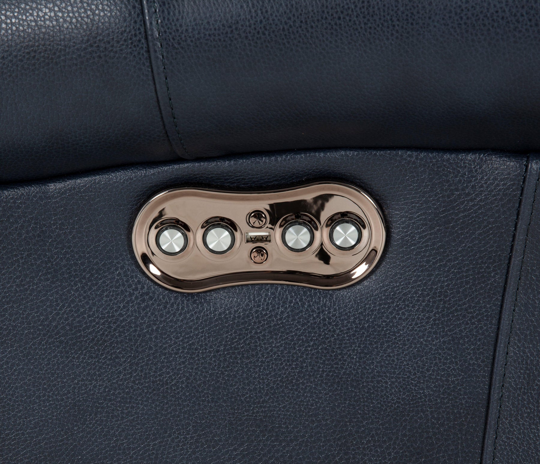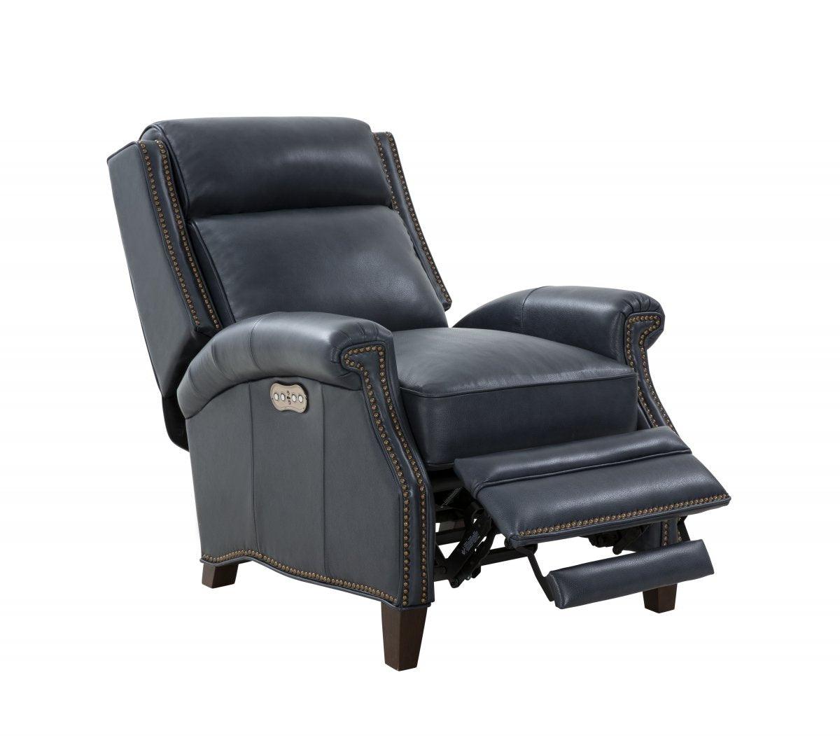 Classic wing back lounge chair features power head rest, power recline, and footrest extension. Kneed back key shaped arms, tailored pub back, loose welted boxed seat cushion with pocketed coil springs encased in foam and wrapped in Dacron with down blend topper provides unsurpassed comfort and support. The wood legs are finished in a mahogany color. Wings, arms, shaped bottom rails, and ottoman are accented with nailhead trim.
