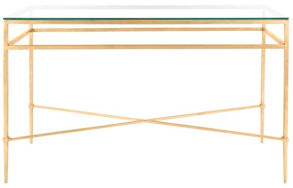 Straightforward and stylish, the Baumgarten Console Table is a study in refinement. Beautiful in an entry hall, living room, or even as a sofa table, Baumgarten exudes understated elegance with its open metal frame finished in antique gilding and smooth glass top.