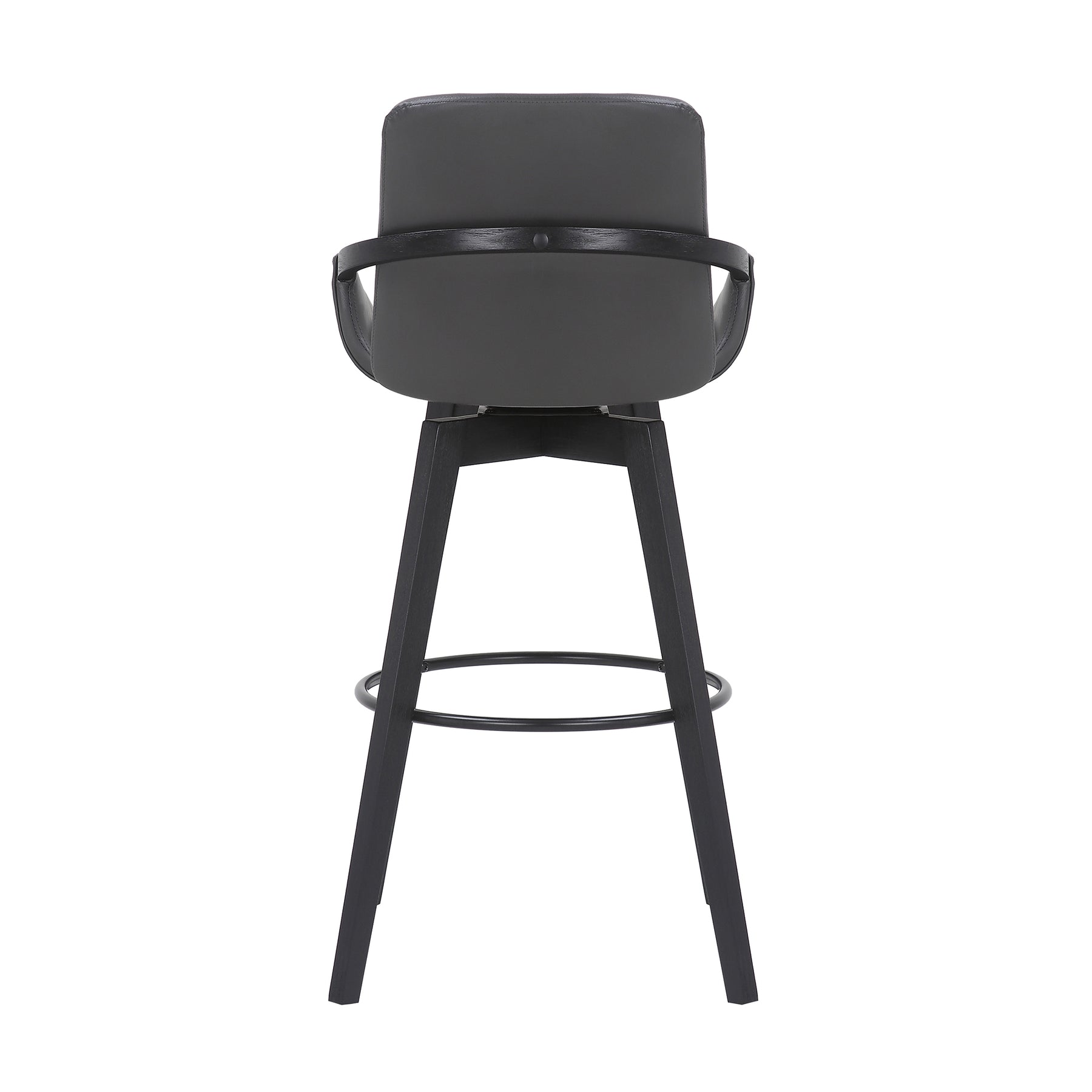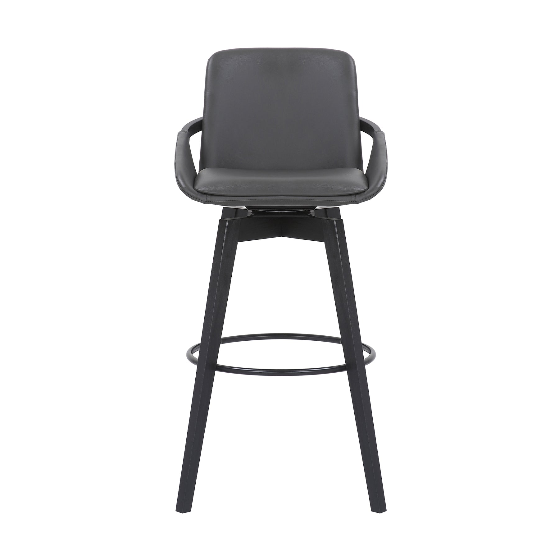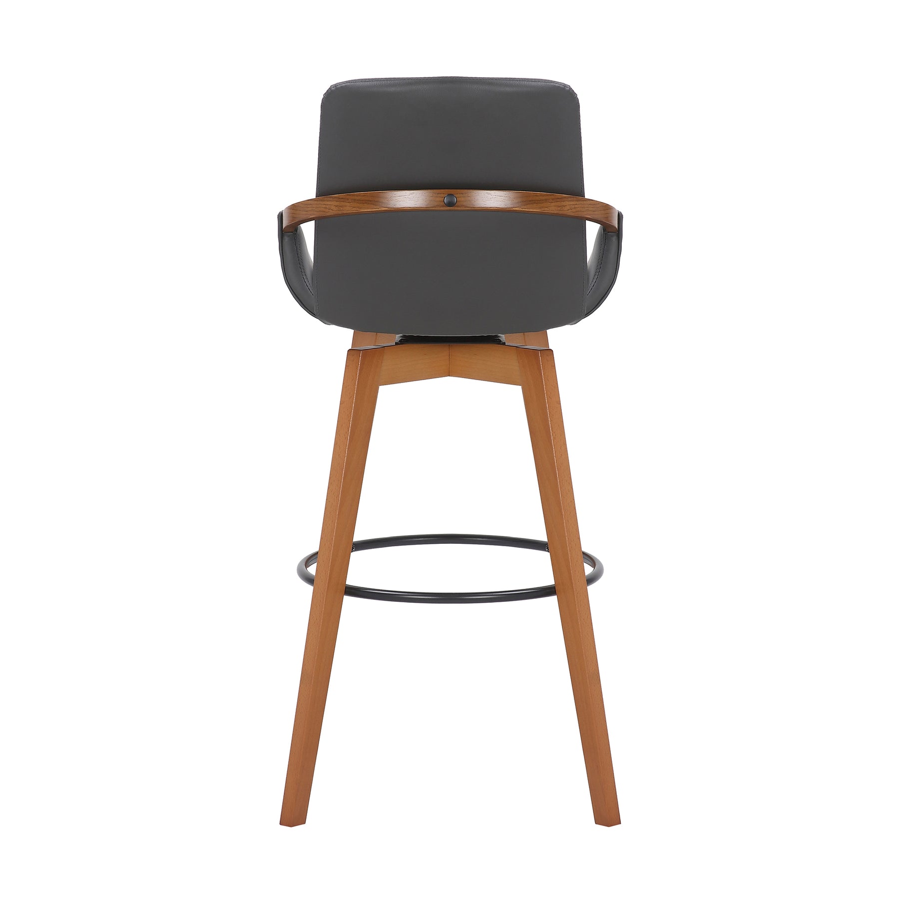 The Armen Living Baylor Swivel Wood Bar or Counter Height Stool in Faux Leather is the next great furniture addition to your beautiful, modern home. This refined and functional bar stool will absolutely enhance the aesthetic in any room. The Baylor's frame and legs are crafted with sturdy and durable wood, giving you years of enjoyment. This bar stool features a 360-degree swivel function which increases mobility for a greater user experience. The sleek, smooth lines featured throughout the body of this bar or counter height chair combined with the look of the soft faux leather upholstery create harmony throughout this piece. This stool also includes a circular metal footrest, which is both visually appealing and practical for the design. The Baylor Bar or Counter Height Stool is available in 26-inch counter height and 30-inch bar height. Also available in your choice of cream or gray faux leather with walnut wood finish or black brushed wood finish.