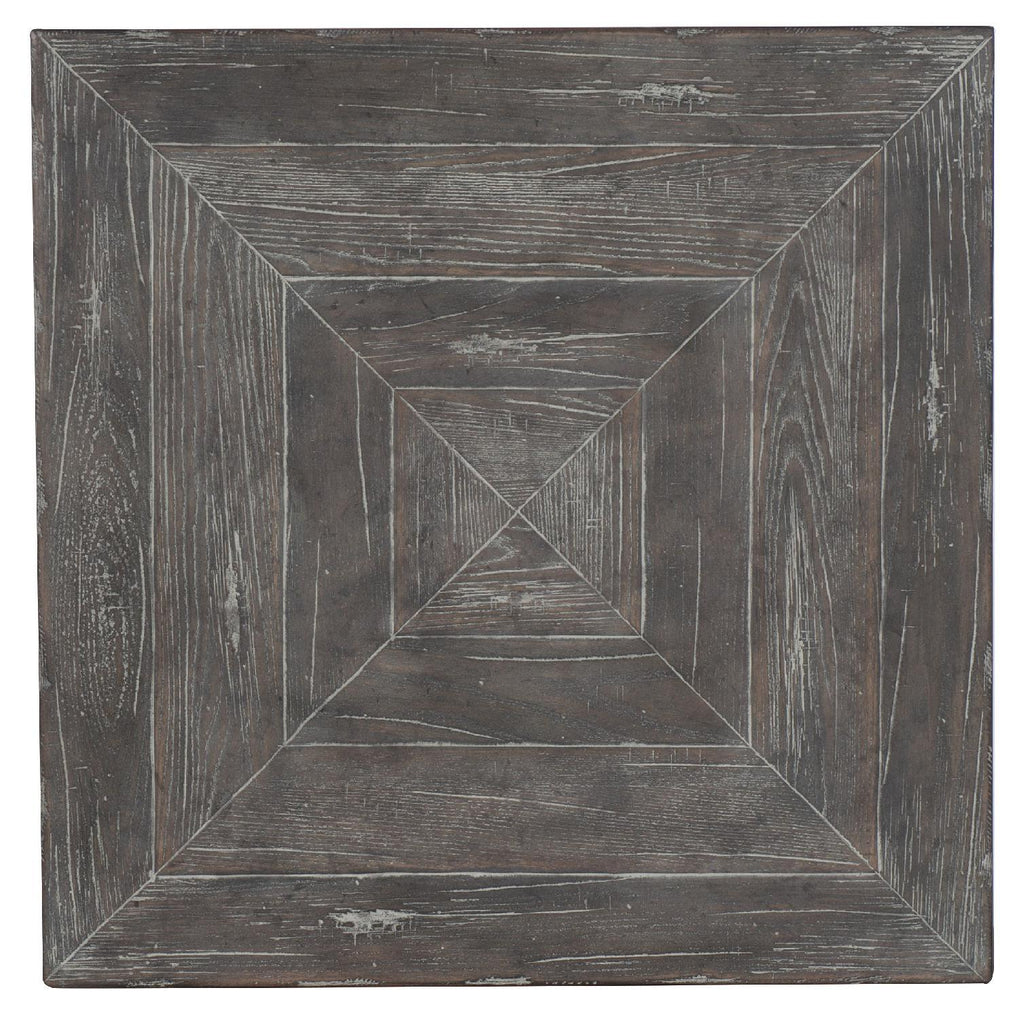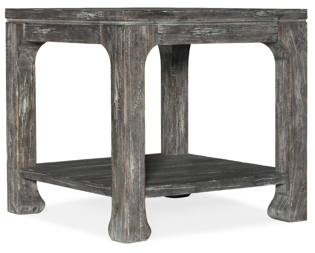 Reflecting that American antiques are a melting pot of styles from English to Italian and from Greek to Asian, this chow-leg-style square end table has a chic appeal. Crafted of Poplar and Hardwood Solids with Elm Veneers, the table is finished in Root Beer, a dark grey tone on Elm. One fixed shelf.