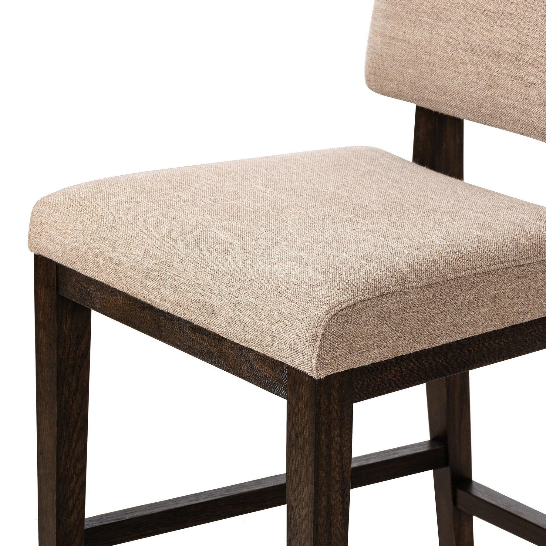 Get back to the basics with this understated modern dining seating. Its simple shape includes a split back design that lets the upholstery peek through. High-performance fabric ideal for the counter framed out by dark-finished oak.