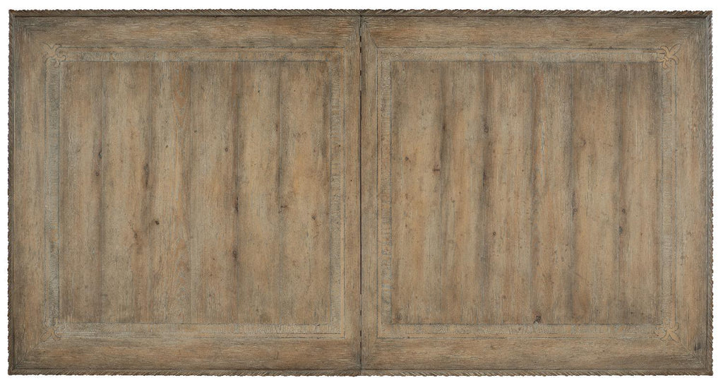The drama of classic European design hits the heights with the grand Castella Rectangle Dining Table with a scrolled trestle base. Imagine a 12th Century French chateaux that has been brought up to date without leaving a single charming detail behind. Linger at the opulent yet inviting rectangular table with a carved border and scrolled bases in harp-like shapes. The refined rustic Antique Slate finish projects laid-back luxury that is luminous and fresh. At 88 inches long with two 20-inch leaves, this table can host a veritable banquet.