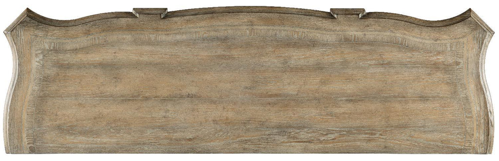 Classic European design elements and a refined rustic finish come together on the shaped silhouette of the Castella 12-drawer dresser with an intricate acanthus leaf base molding and jewelry-like antique silver shaped drawer hardware. The timeless dresser is made casual with the luminous finish exuding a look of laid-back luxury. The center drawer has a drop front to accommodate wire management and electronics, and the three bottom drawers are cedar-lined.