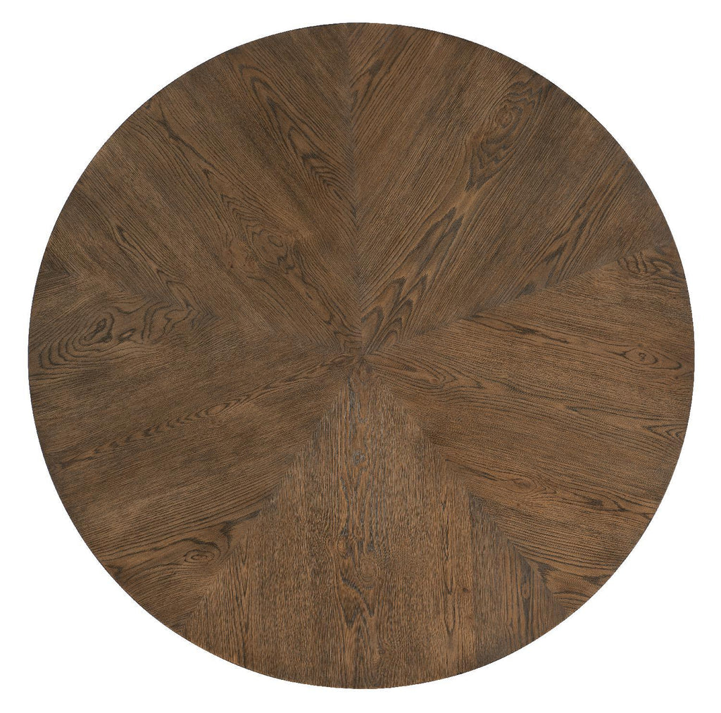 Warm and modern, the focal-point-worthy Chapman Round Cocktail Table invites you to gather round and get comfortable. Crafted of White Oak Veneers with hand-hammered metal ferrules, the table features the warm brown wire-brushed Sorrel finish. One fixed shelf.