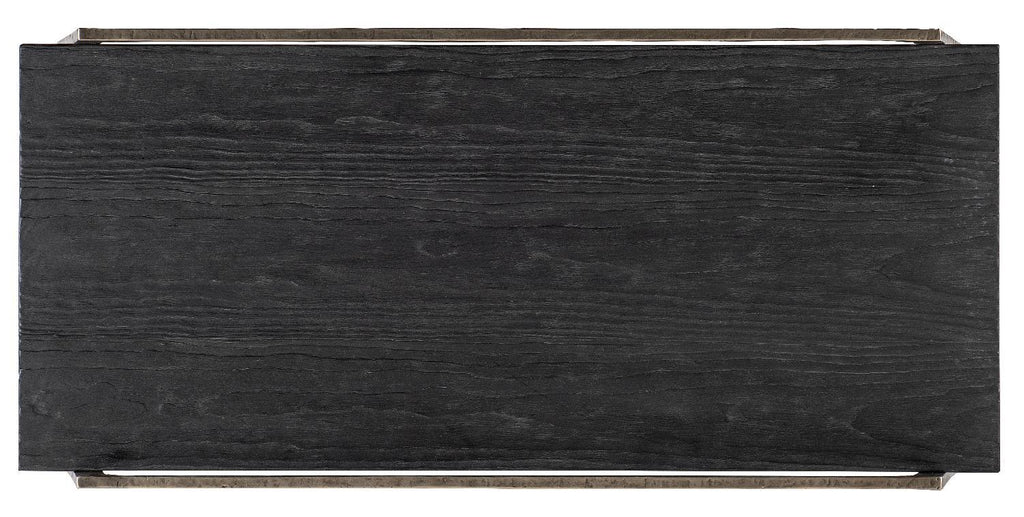 Pine Veneers, hand-hammered pewter and a Charred Black finish featuring a Japanese technique to achieve the look of burnt wood come together to create a truly unique piece in the Chapman Cocktail Table. Modern yet warm, and up-to-date while employing an ancient technique, this cocktail table is memorable and focal-point worthy.