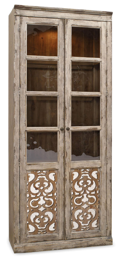 Breathtaking alone, in pairs or in a set of 3 or more, the Chatelet Bunching Curio creates an aura of rustic luxury. Inspired by farm style antiques, the curio has two seeded glass doors with mirrored fretwork at the bottom. The Caramel Froth finish is accented by the aged white Paris Vintage. Behind the wood-framed glass shelves are 3 adjustable wood-framed glass shelves, one fixed shelf and one adjustable wood shelf. One light with 3-intensity switch.