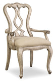 Relax in comfortable elegance with the Chatelet Splatback Arm Chair that will help you create a luxurious but laid-back dining experience, or serve as extra seating in a family room setting. The upholstered seat is covered in a natural-colored linen blend and the gracefully-shaped back is finished in Caramel Froth, a soft amber with vintage white accents.